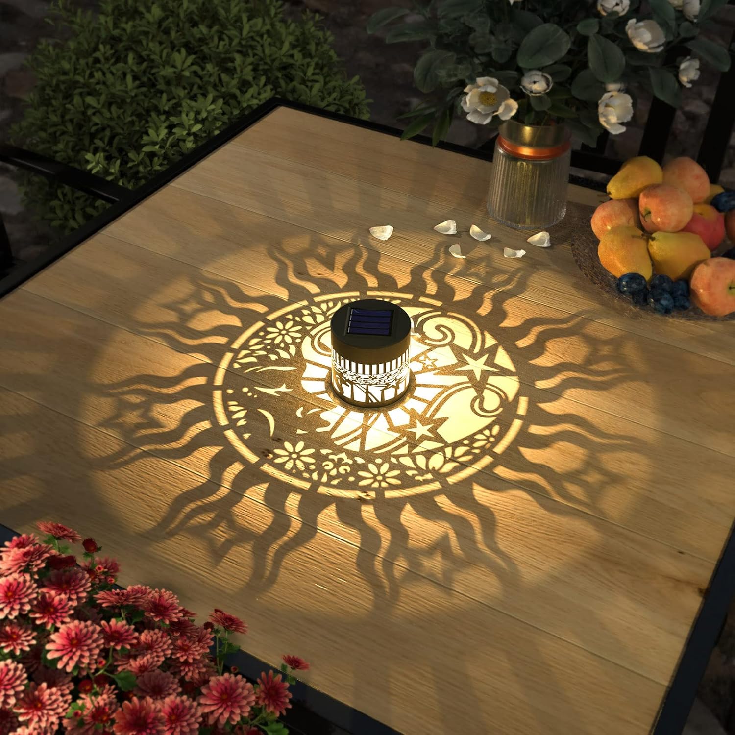 - Good Decoration: 10 lumens of warm yellow light. The small fence solar lights can project a unique and beautiful lotus pattern. In a dim environment, the solar lights can illuminate a corner of the fence or the wall and create a beautiful and warm atmosphere. They are very suitable as holiday decorations and gifts for relatives and friends