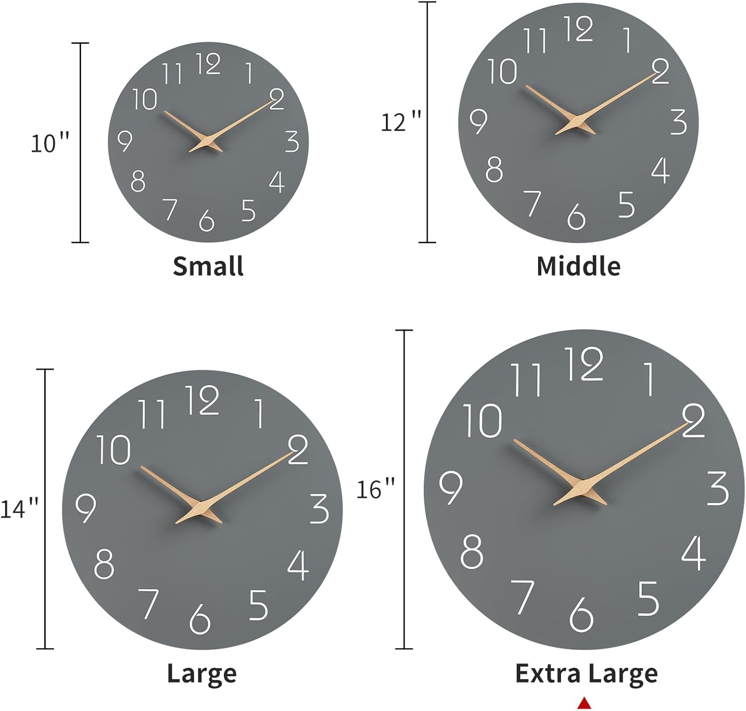 - 【SIMPLE DESIGN】- This modern simple 16 inch large wall clock.Textured clock face, gray matte surface, simple but not simple, stylish, meticulous and unassuming.