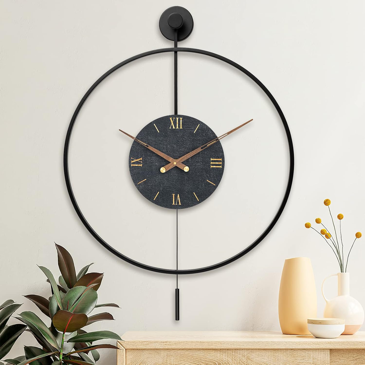 - 【Our Promise Service】Please be sure to watch the installation video after purchase.If your wall clock with pendulum can't swing or hang,please contact us at the first time and we will help you solve the problems! If the black wall clocks don't work,please contact us, we'll offer you after-sale service and our team will give you satisfactory after-sales service within 24 hours.