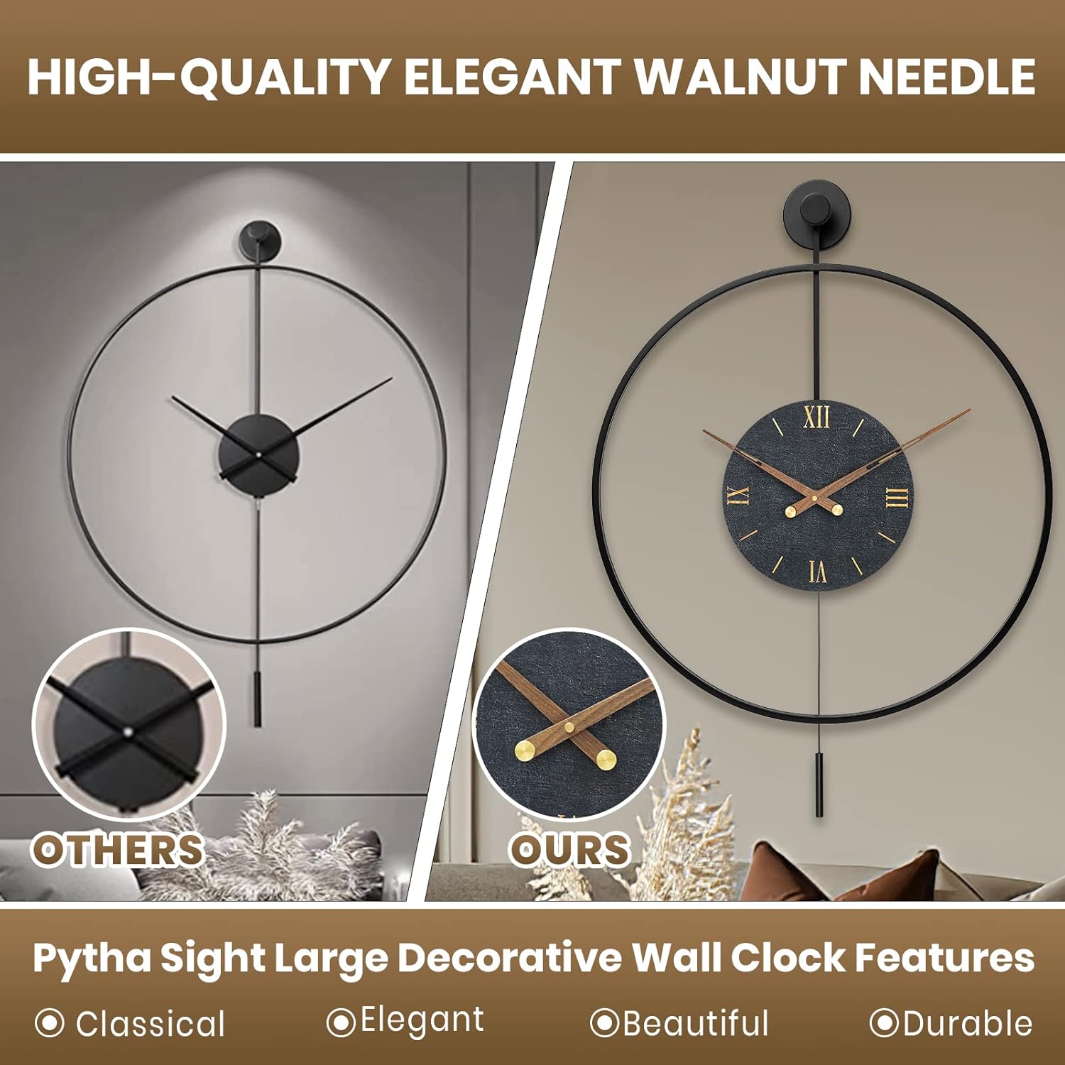 - 【Elegant Walnut Pointer】Pytha Sight wall clock modern uses walnut pointer,which is elegant and generous,not easy to deformation.The texture is very good,we carefully carved every detail,only to present classic,beautiful wall clock for you.It's not just a large wall clock,it's a work of handicraft art.