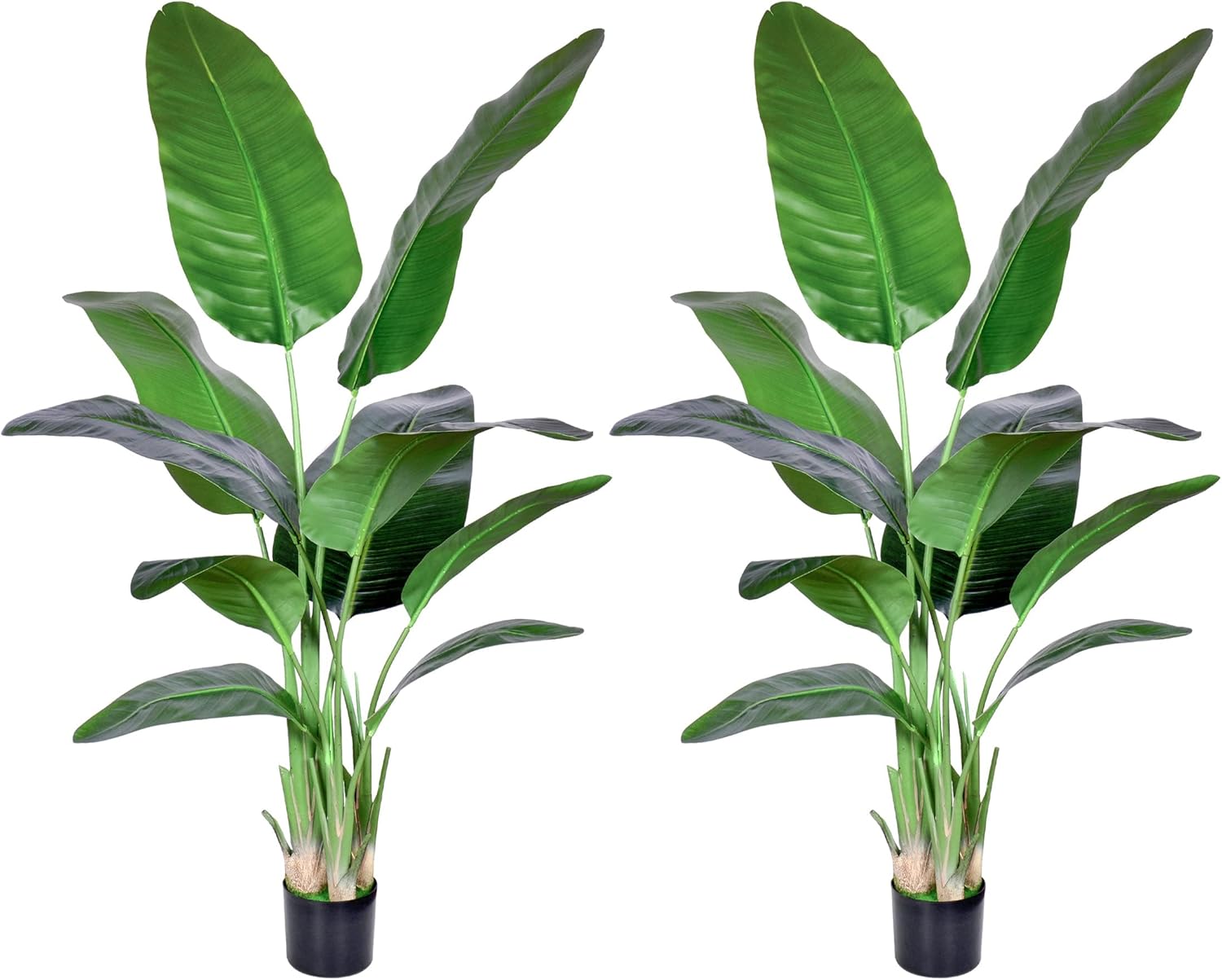 2Packs 5FT Artificial Bird of Paradise Plant,Faux Palm Tree Potted Plant with Real Touch Leaves,Fake Trees for Home Living Room Office Indoor Outdoor Decor(5 FT-2Packs)