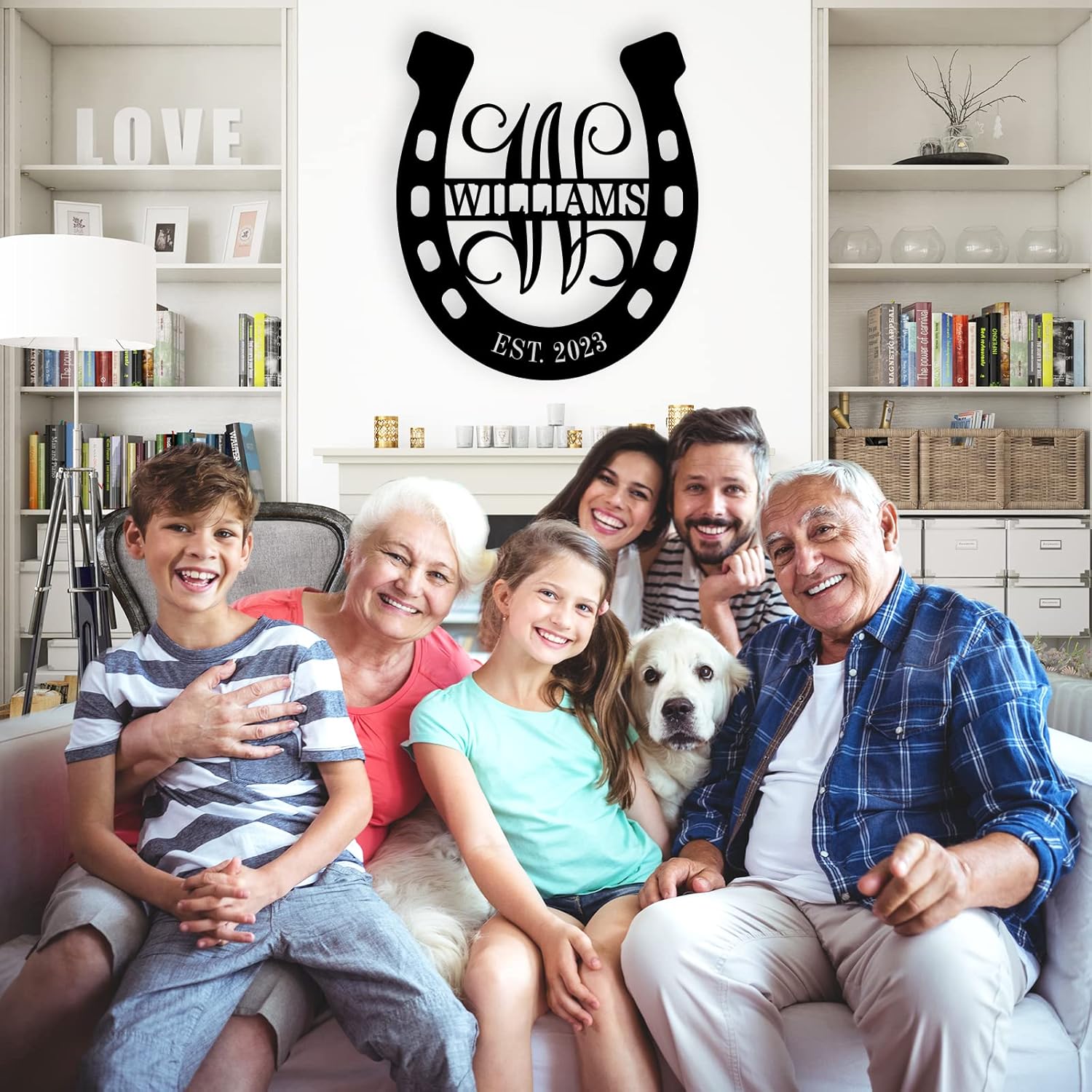 Personalized Horseshoe Metal Sign with Initial and Family Name, Custom Monogram Horseshoe Metal Sign, Horseshoe Metal Wall Art Last Name Sign Equestrian Horse Lover Gift Horseshoe Living Room Decor