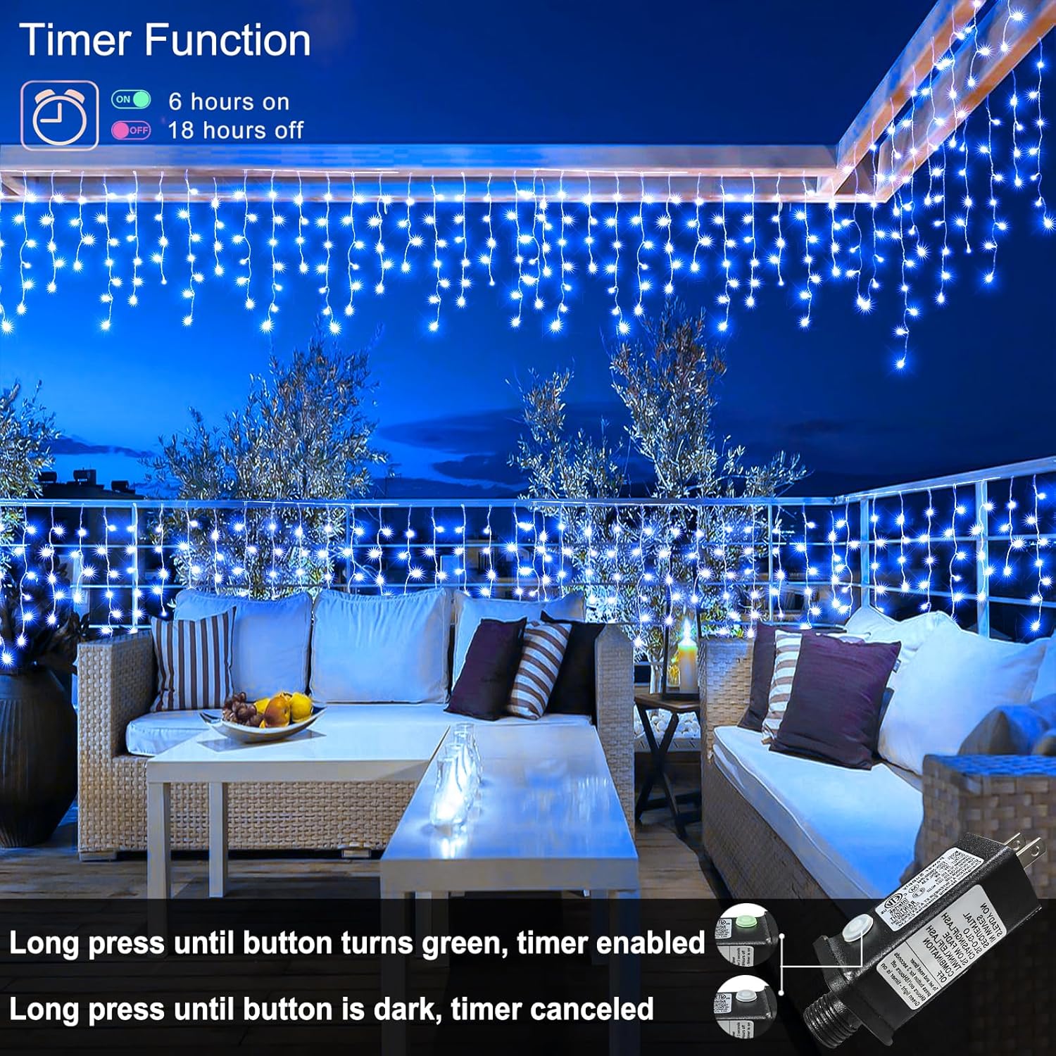 99ft Blue Christmas Lights Outdoor, 1216 LED Icicle Lights for Outside House with Clear Wire 8 Modes Timer, Plug in Waterproof for Home Holiday Eaves Yard Party Tree Room Wall Indoor Decoration