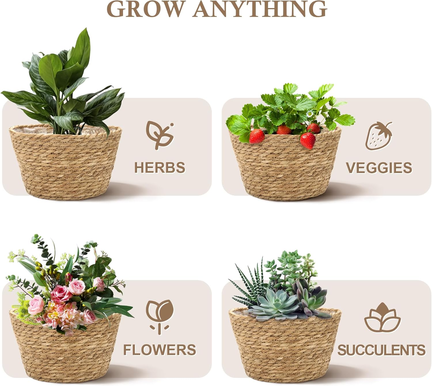 - Handcrafted Plant Baskets: Made from premium water hyacinth for a natural eco-friendly look; Hand woven with precision and no added chemicals.