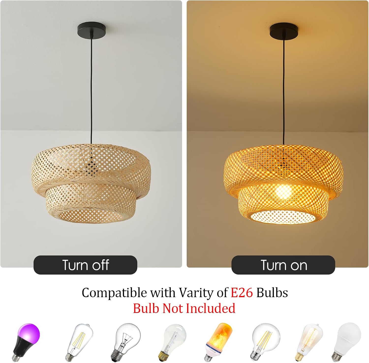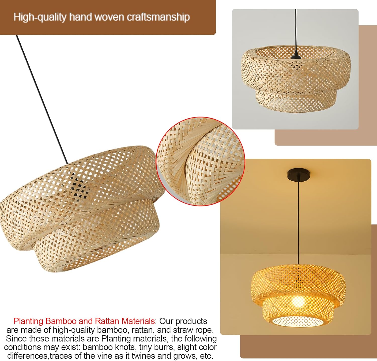 - 【Excellent Design】Bamboo rattan, the pendants are made of natural materials. The lights are hand woven with natural bamboo by superb skills bamboo artists. Decorated with classic tropical style elements, creates a wonderfully new look