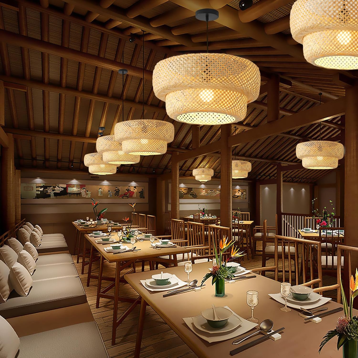 Bamboo Pendant Light,Boho Rattan Hanging Light,13.8" Hand Woven Wicker Chandelier for Kitchen Island for Kitchen Island Dining Bedroom Living Room Restaurants