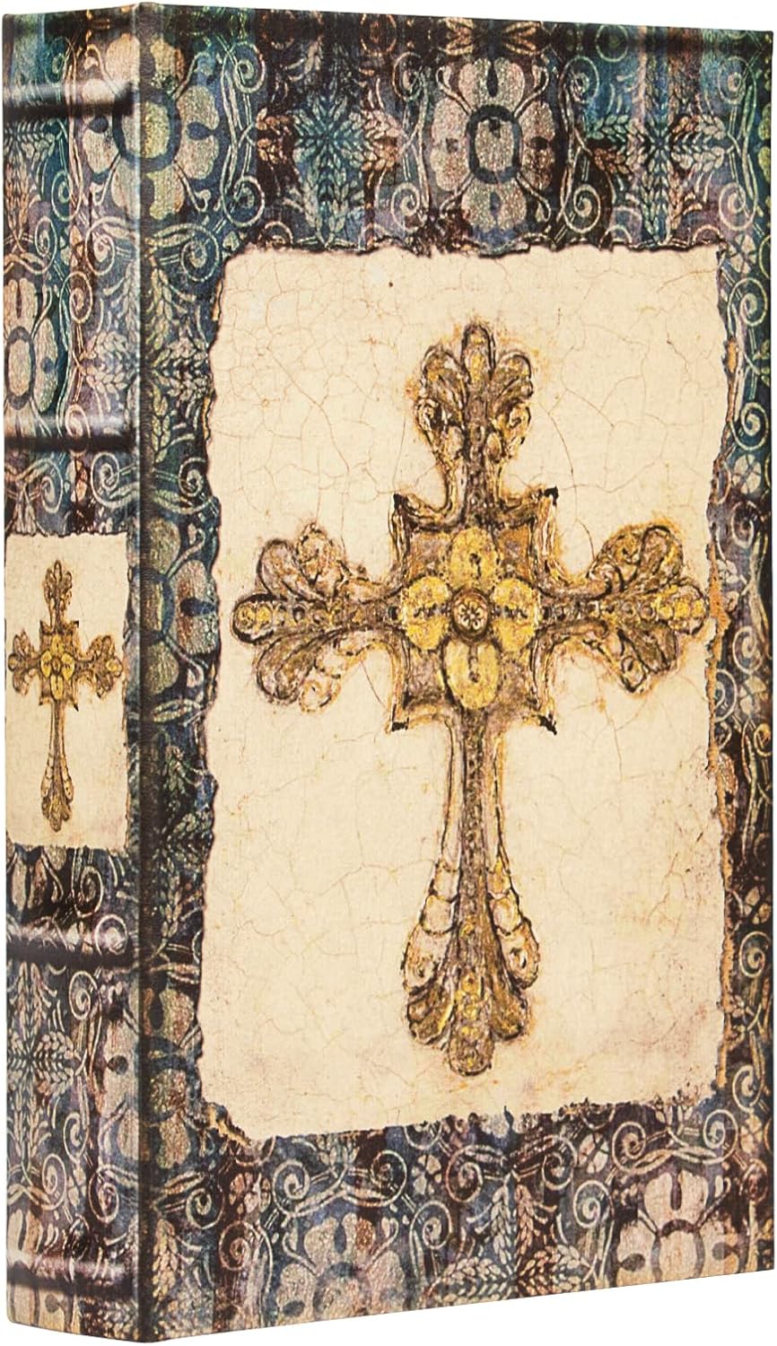 Vintage Style Wooden Decorative Book Box - Faux Leather, Christian Cross Pattern, Gift Idea