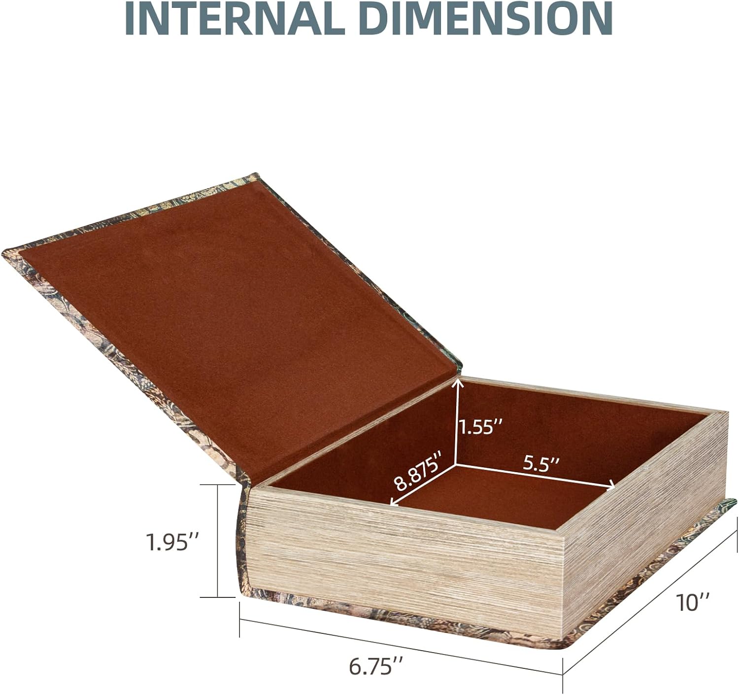 - This decorative book box uses MDF materials with the design of imitation pages. It is a vintage style fake book, which is the perfect bookshelf decoration.Good ideas for Christmas gift