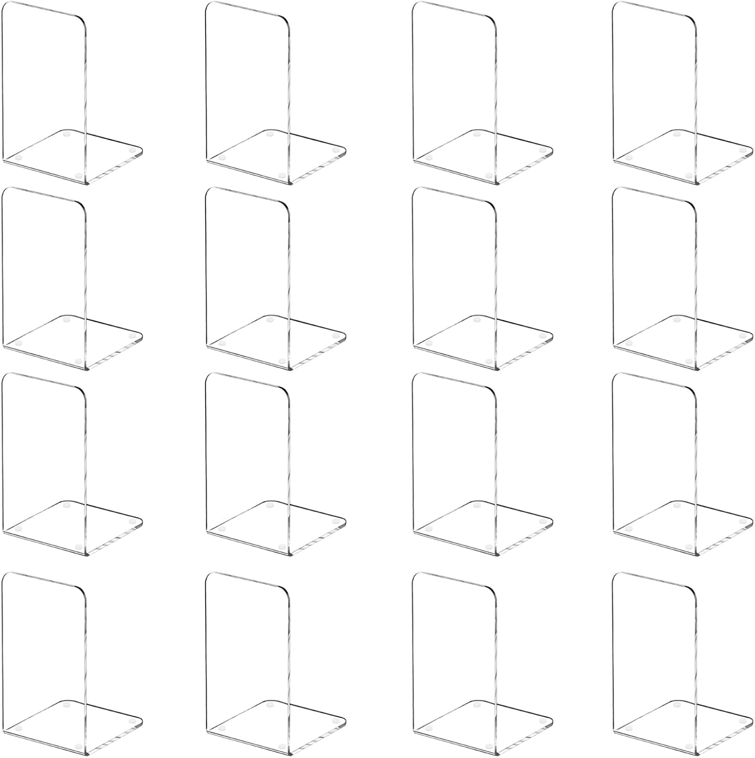 Lulonpon 16 Pieces Book Ends, Bookend, Books Ends for Shelves, Books Ends for Heavy Books, Clear Bookends, Acrylic Bookends for School, Library,Desktop Organizer and Book Shelves