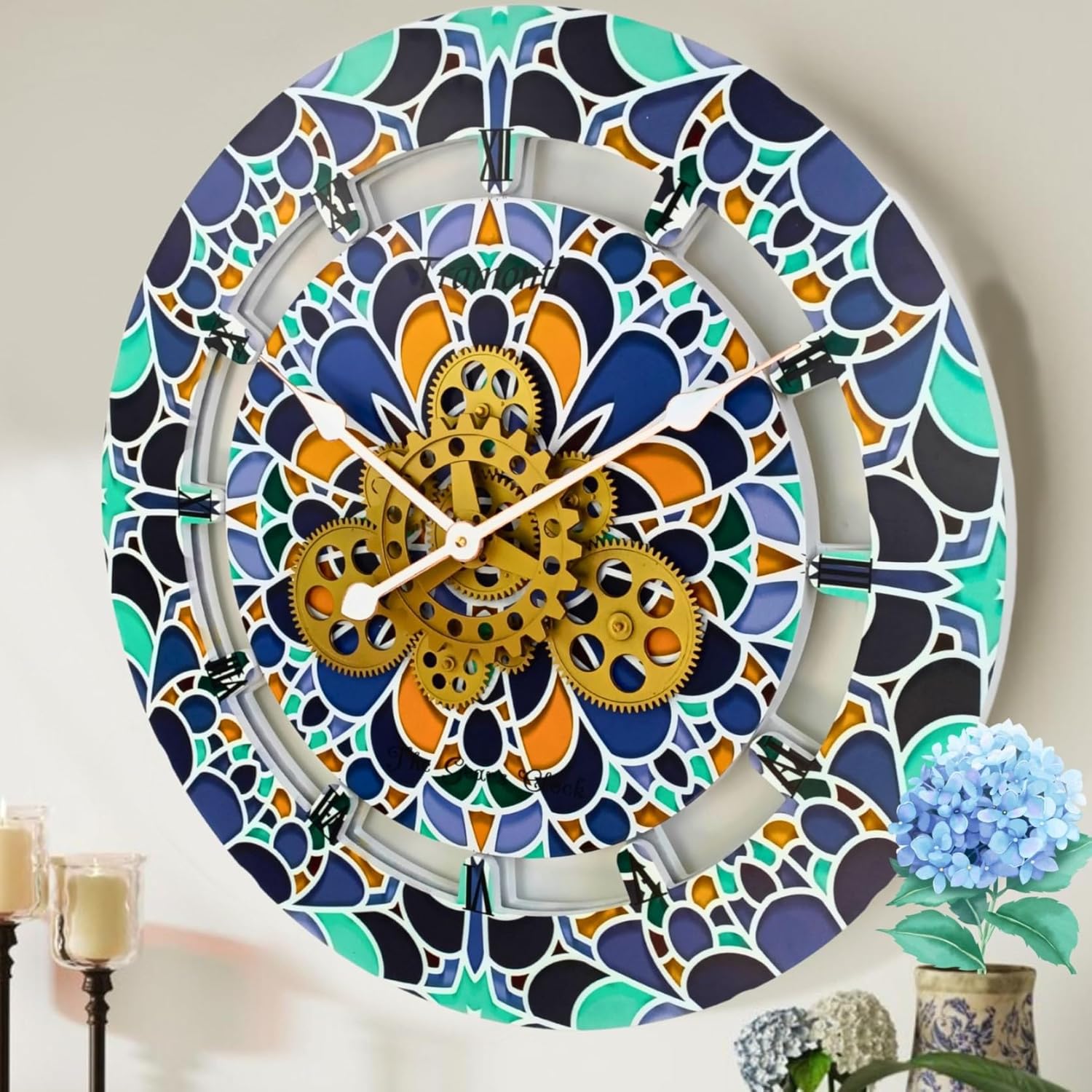 The Gears Clock Wall Clock Italy Collection with Moving Gears (Tramonti, 24 inch Round)