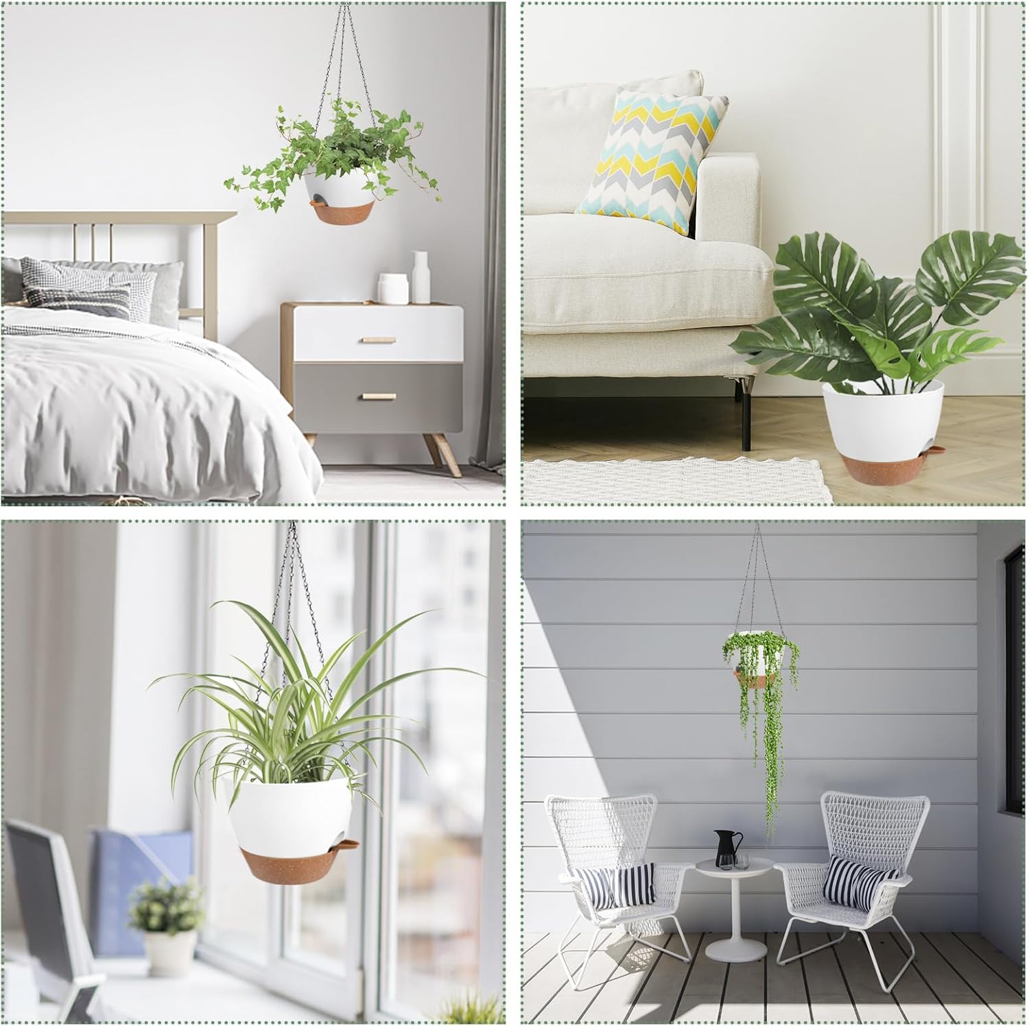 - Removable Trays - Hanging pots for plants indoor come with a removable tray that serves as a self-watering reservoir, storing a certain amount of water for the plants (10-14 days). You don't have to worry about your plants running out of water when you're away on a business trip or traveling.
