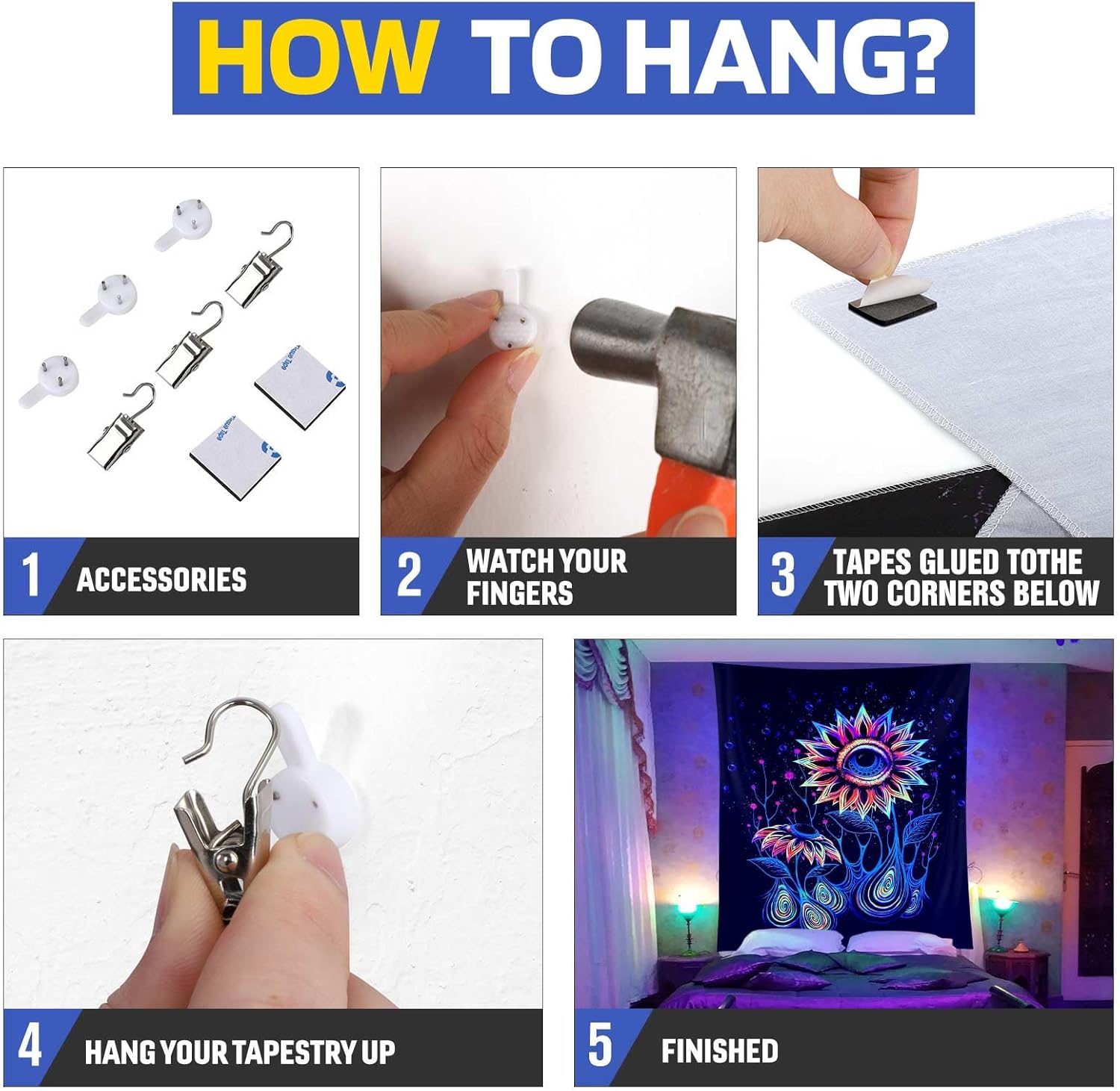 - π Brighten Up Your Space: ADDWel blacklight tapestry adds a vibrant and glowing touch to any room. ADDWel tapestry is printed with a UV-reactive ink that creates a neon-like effect under blacklight. Perfect for parties, raves, and other events that require a fun and unique atmosphere.