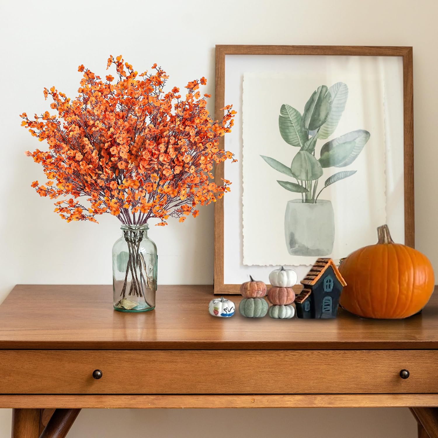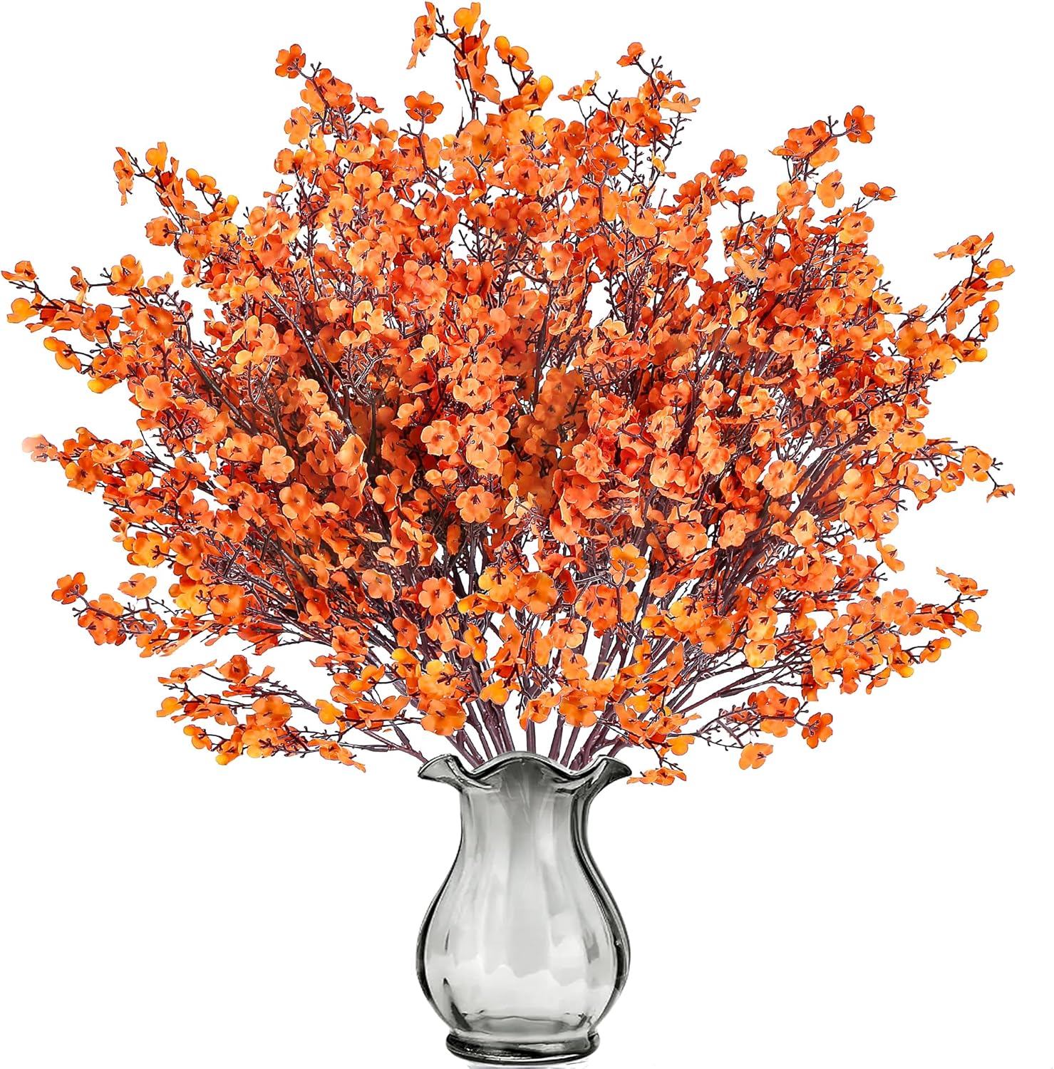Sggvecsy 15 Pcs Babys Breath Artificial Flowers Gypsophila Bouquets Bulk Real Touch Fake Silk Flowers for Home DIY Floral Arrangement Table Centerpiece Fall Autumn Decoration (Fall Orange)