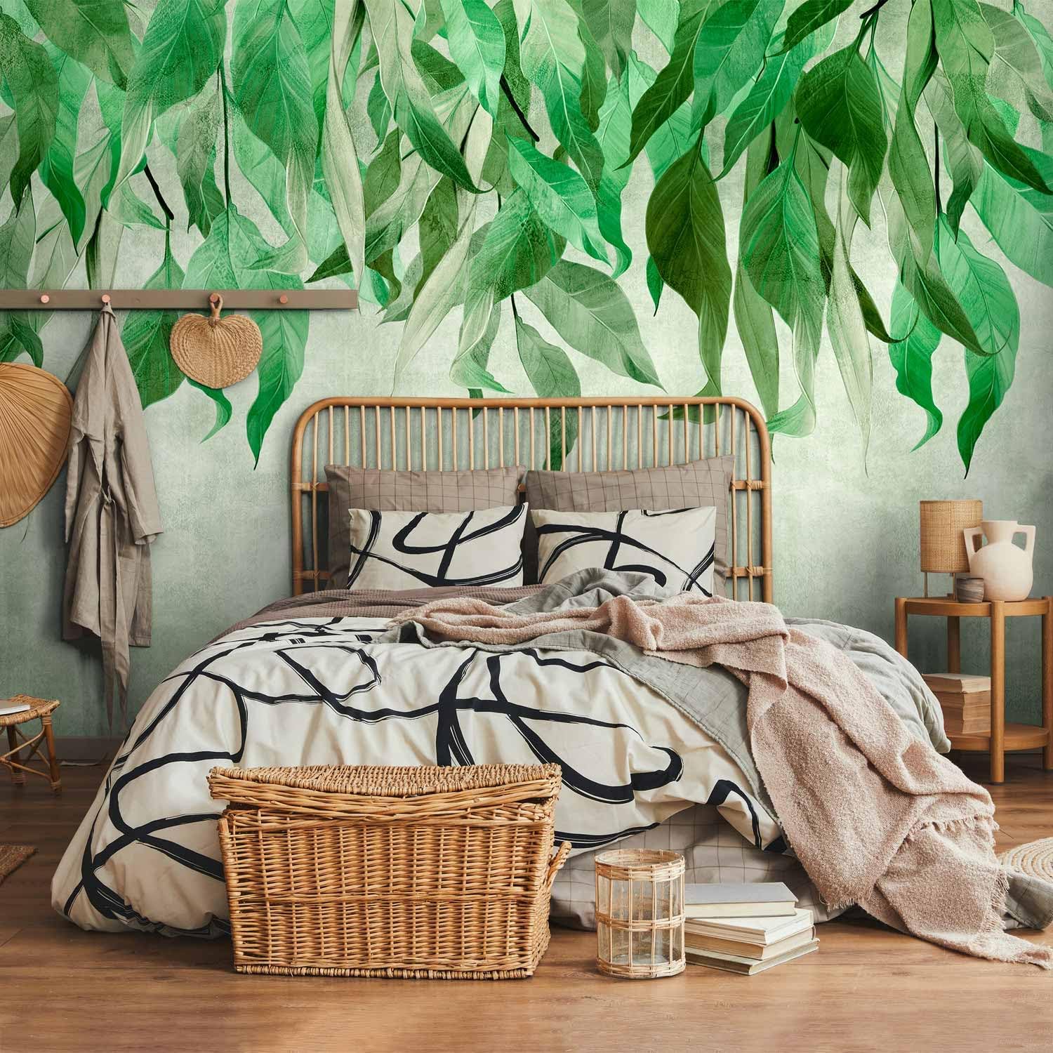 artgeist Premium Wall Mural Hanging Leaves 177x124 in - Non-Woven Wallpaper Fleece Wall Decor Photo Print Picture Image Design Nature Botanical Concrete Green Like Painted b-C-10146-a-a