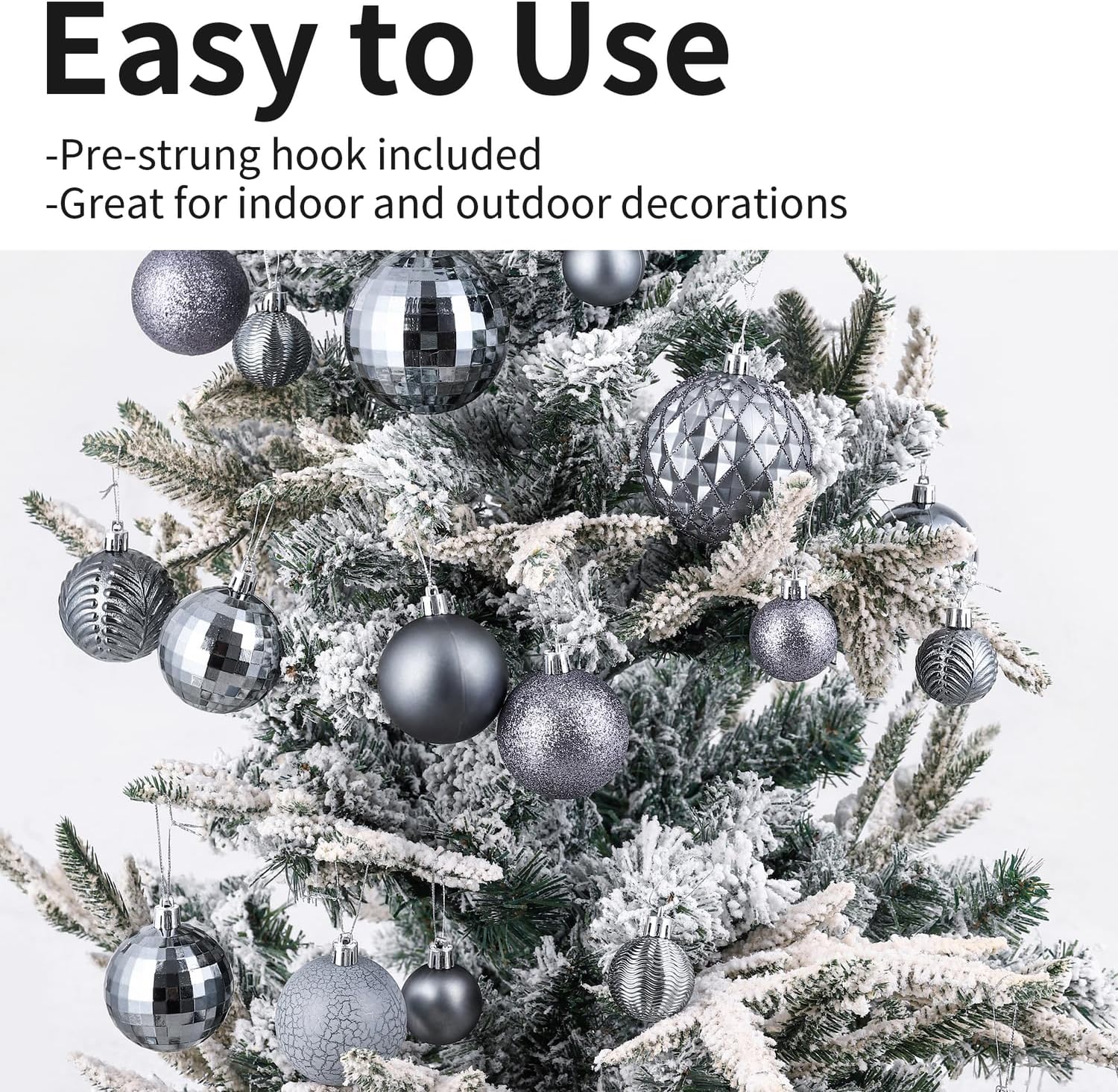 LANGXUN 36pcs Gery Christmas Tree Decorations Balls, Bolas De Navidad, 2025 Christmas Decor, Indoor Outdoor Shatterproof Christmas Ornaments, Xmars Party Wedding Suppiles