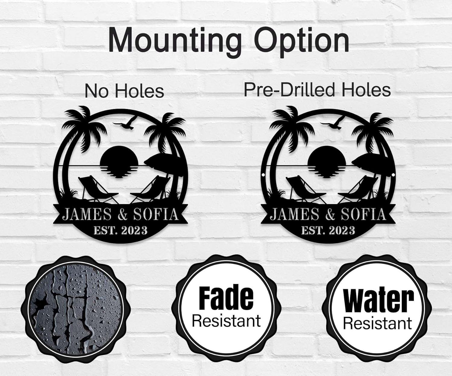 - Personalized Beach Metal Monogram Sign: Showcase your unique style with a custom last name sign that adds a beachy touch to your coastal house decor.