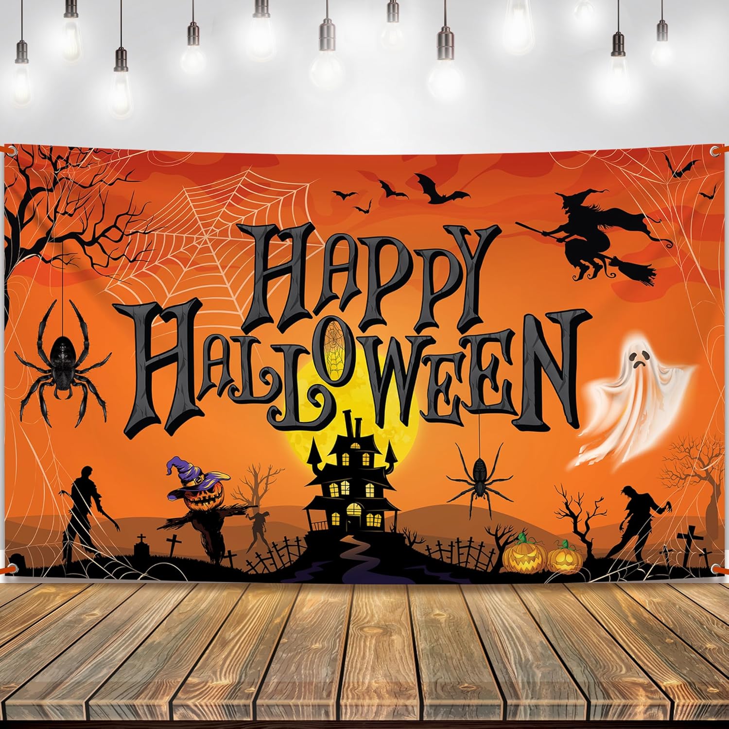 - CAPTIVATING DESIGN | EASY TO ASSEMBLE : The Intricate details and rich orange and black colors of the Halloween happy birthday backdrop create a visual masterpiece that instantly transports you to a realm where the eerie and the festive coexist. The halloween backdrops for photoshoot has 4 gromnets at the corners so that you can easily hang them with the provided 20 Inch Orange ribbon roll for your Boo Halloween theme birthday party.