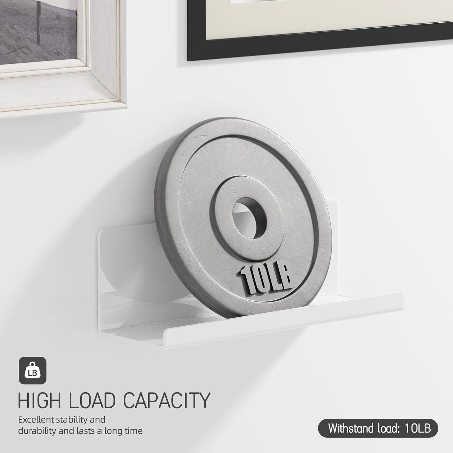 Acrylic Wall Floating Shelves Set of 2, Wall Shelves White 12 Inch Adhesive Wall Organizer Adhesive Shelf for Bathroom, Kitchen, Bedroom, Office, Gaming Room, No Damage, No Drill