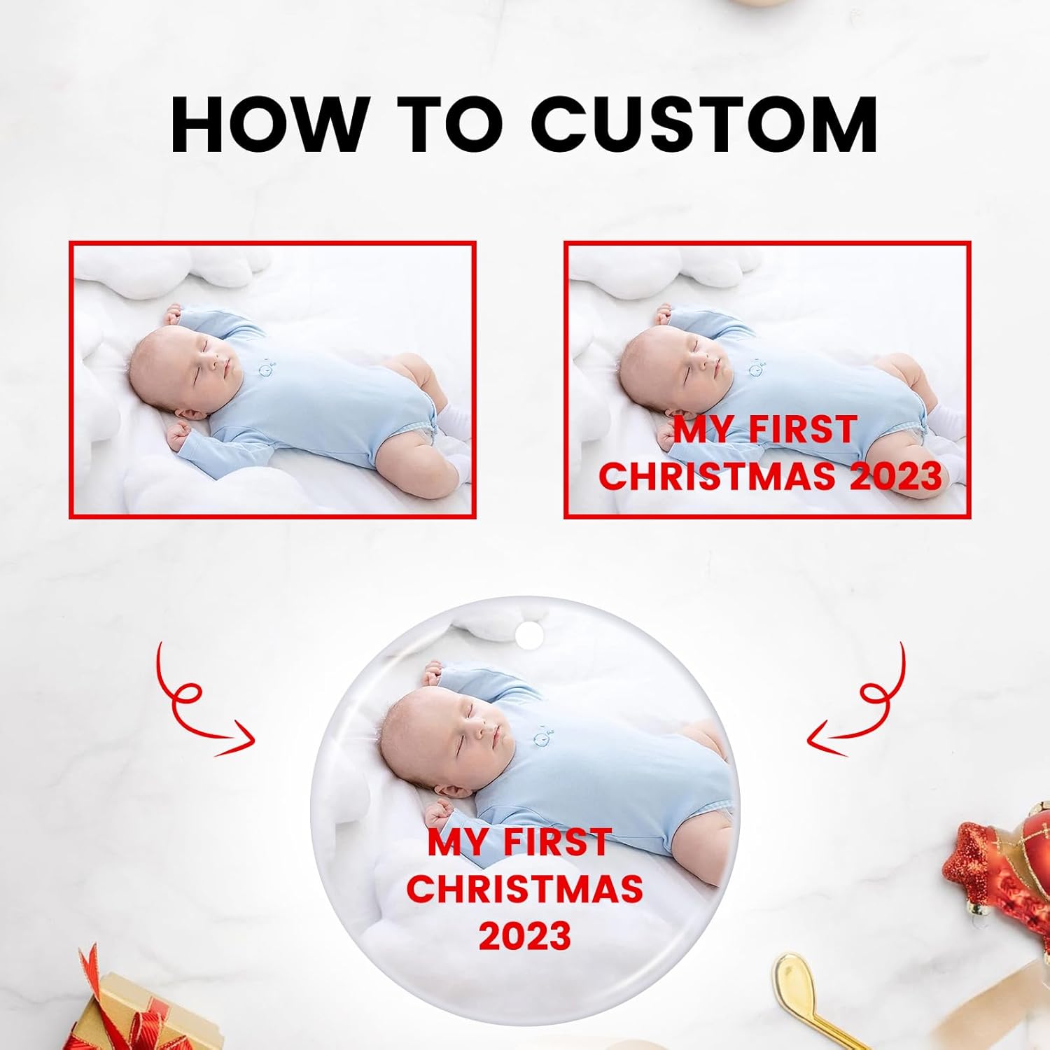 - 【Make Your Own Christmas Ornament 2025】Click "Customize Now" to start personalize your own ornament special with desired photo, words, text, logo, image, saying, number, name etc. You can customize several ornaments to send to all your loved ones. Imagine how surprised they will be when they receive the personalized gifts.