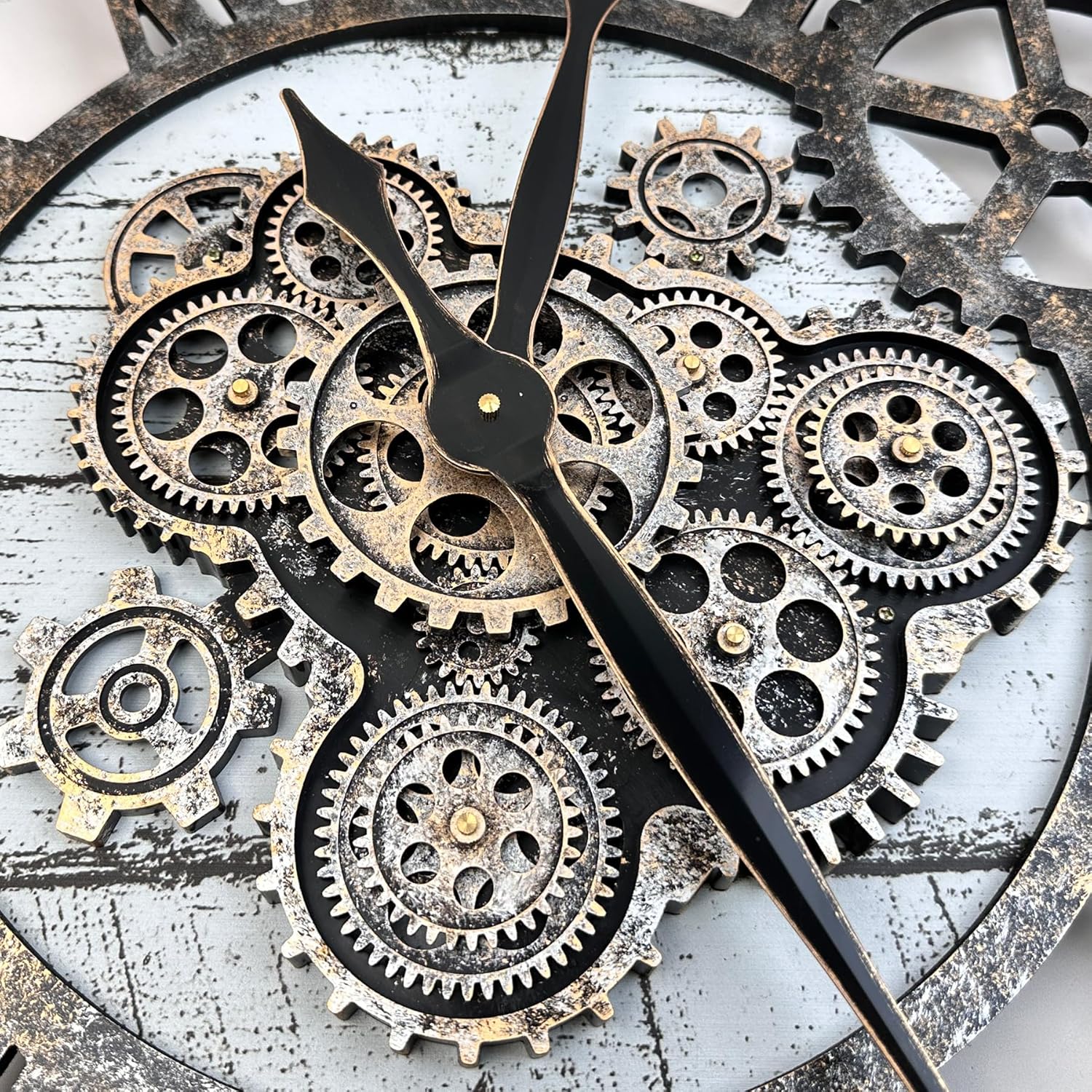 - WIDE APPLICATIONS: Oversized rustic wall clock is not only a timepiece, but also a piece of artwork, greatly adding charm to a room, like living room, farmhouse, fireplace, bedroom or dining room, studio, gallery, loft, cafe, bar, club, etc. Decorative wall clock will become an instant conversational piece for the moving gears and how cool it looks. Also awesome gifts for families or friends.