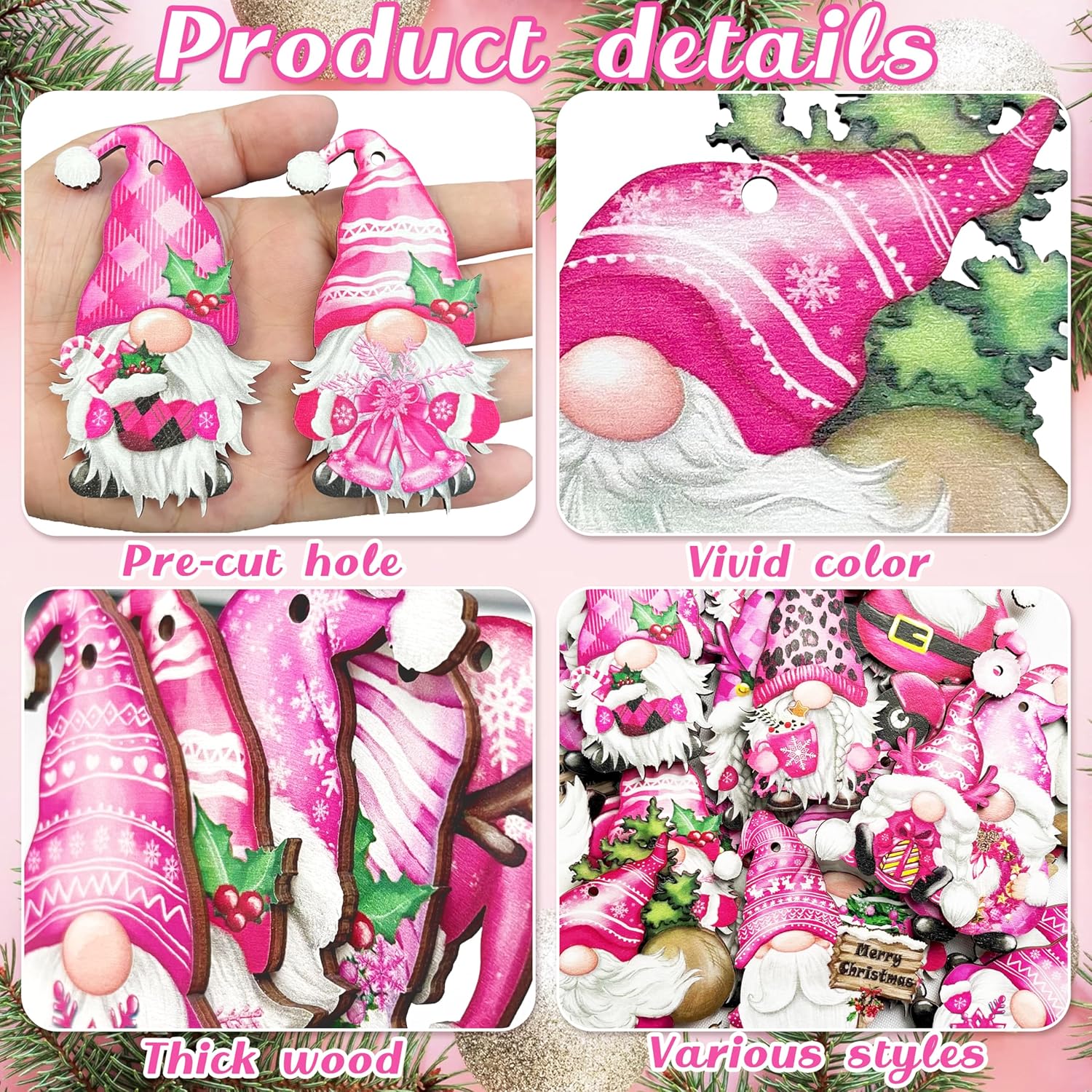 - New Designed Christmas Gnome Wooden Ornaments -- 24 PCS gnome wooden slices with exquisite workmanship in 12 different styles are made of high-quality wood, painting in front and empty at back.