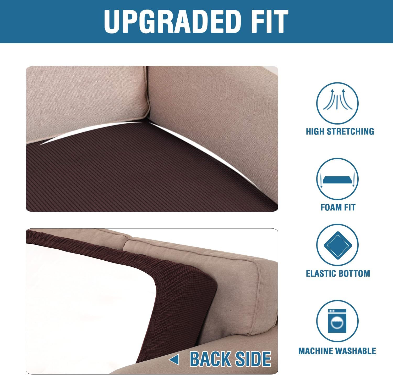 H.VERSAILTEX Super Stretch Individual Seat Cushion Covers Sofa Covers Couch Cushion Covers Slipcover Sets Thick Jacquard Textured Twill Fabric (1 Piece Sofa Cushion Cover, Chocolate)