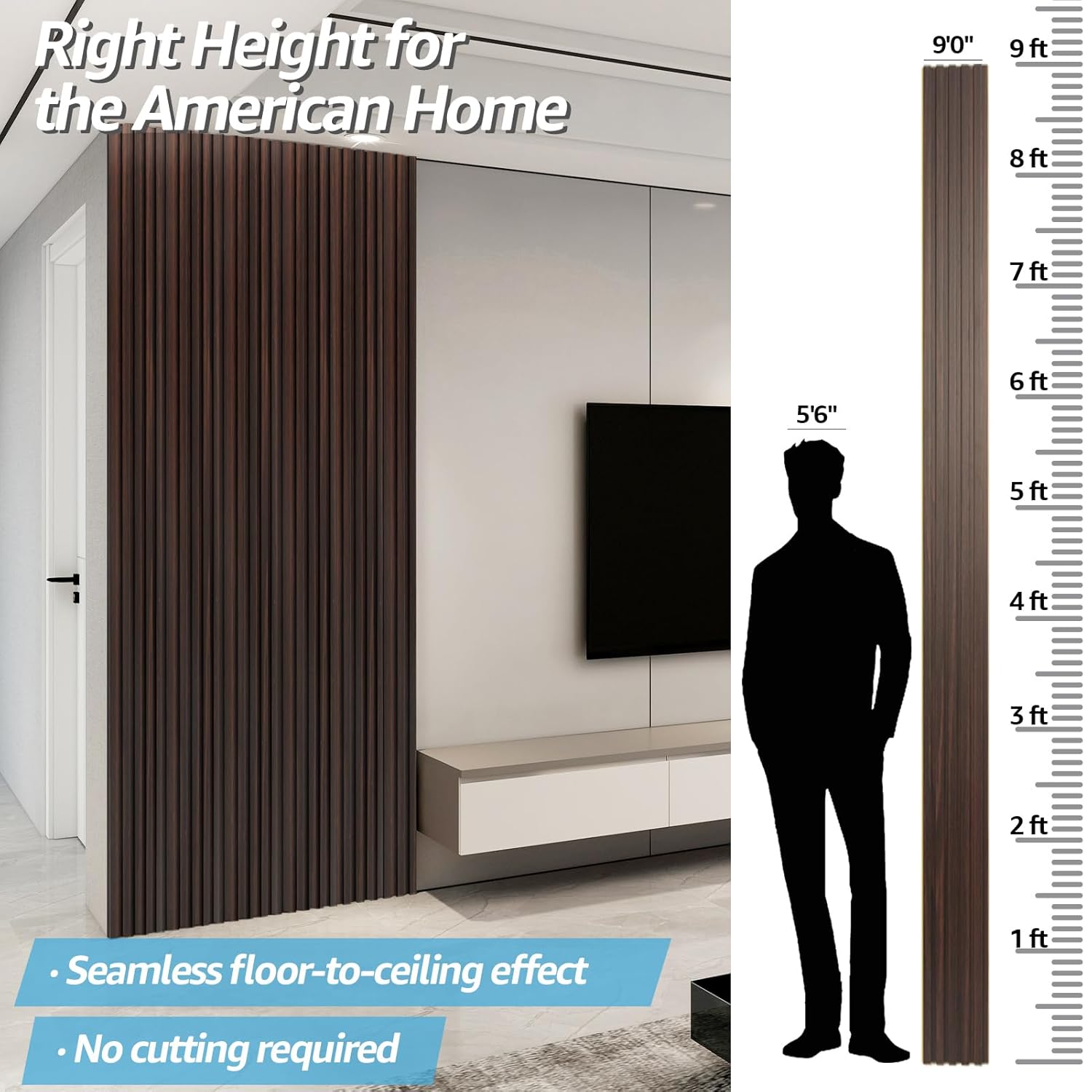 Art3d WPC Wainscoting Panels, 16-Pack 48 x 6 Inch 3D Wall Accents for Interior Wall Decor, Living Room, Bedroom, Black