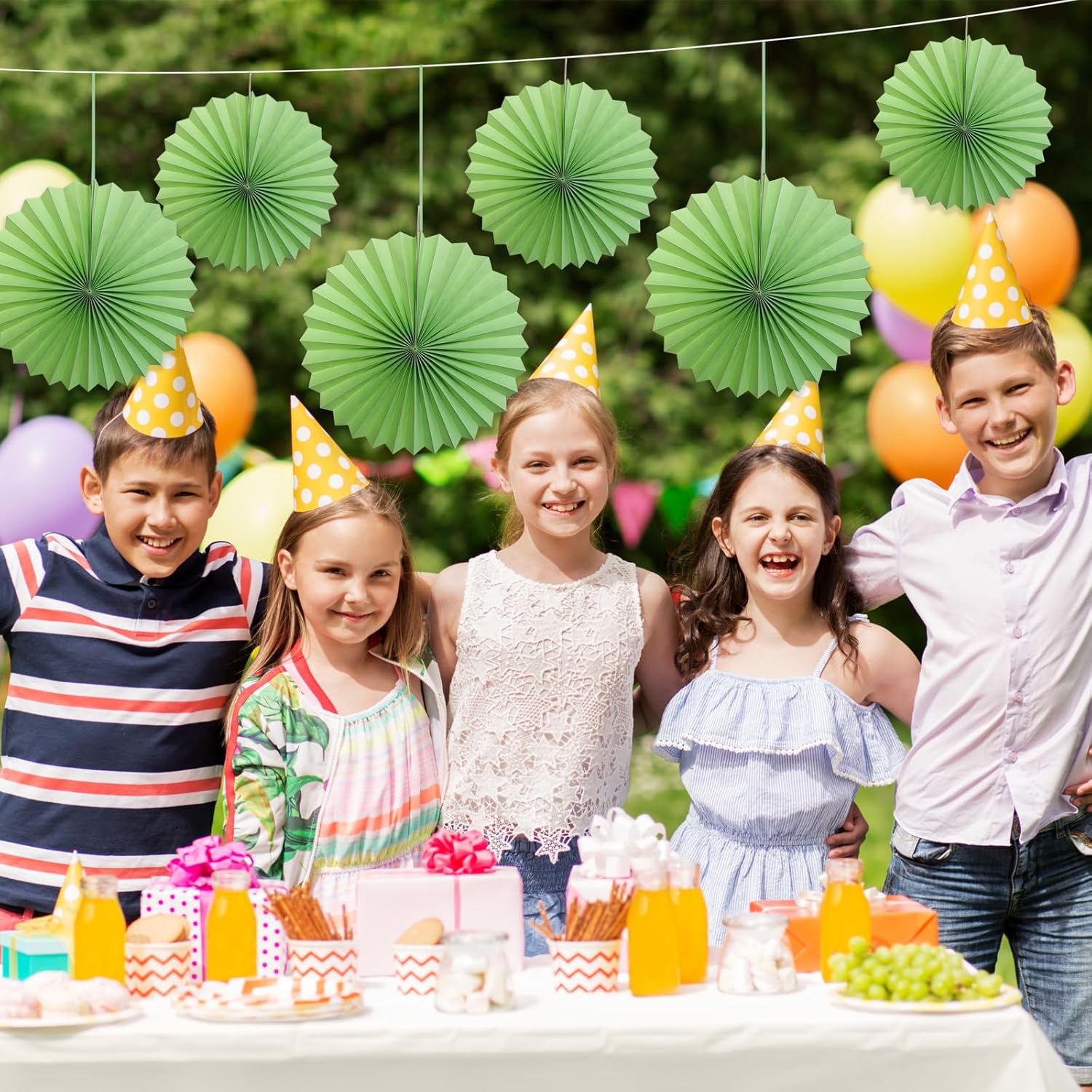 Green Hanging Paper Fans,Green Accessories Paper Decorations for Party,Army Birthday Party Decorations,Lime Green Decor 16in Hanging Paper Fans 30 Color DIY Set (Light Green))