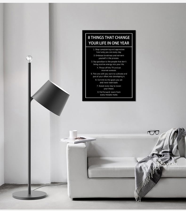 8 Things That Change Your Life In One Year Motivational Canvas Wall Art Inspirational Wall Decor Quotes Poster Print Artwork for Office Living Room Painting Stretched and Framed [18''Wx 24''H]