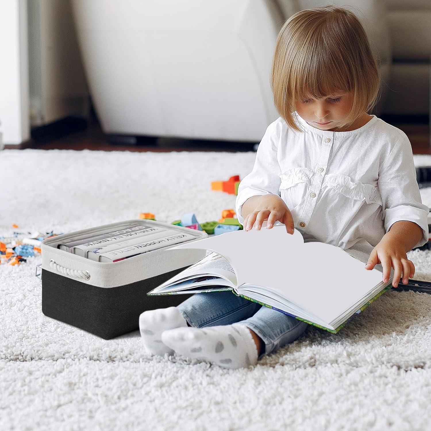 TheWarmHome Storage Basket for Organizing - 3 Pack 13.8x9.8x6.7 inch Medium Collapsible Storage Bin for Shelves with Handles Organizer Closet Cubes Cloth Gift Toy (White & Black)
