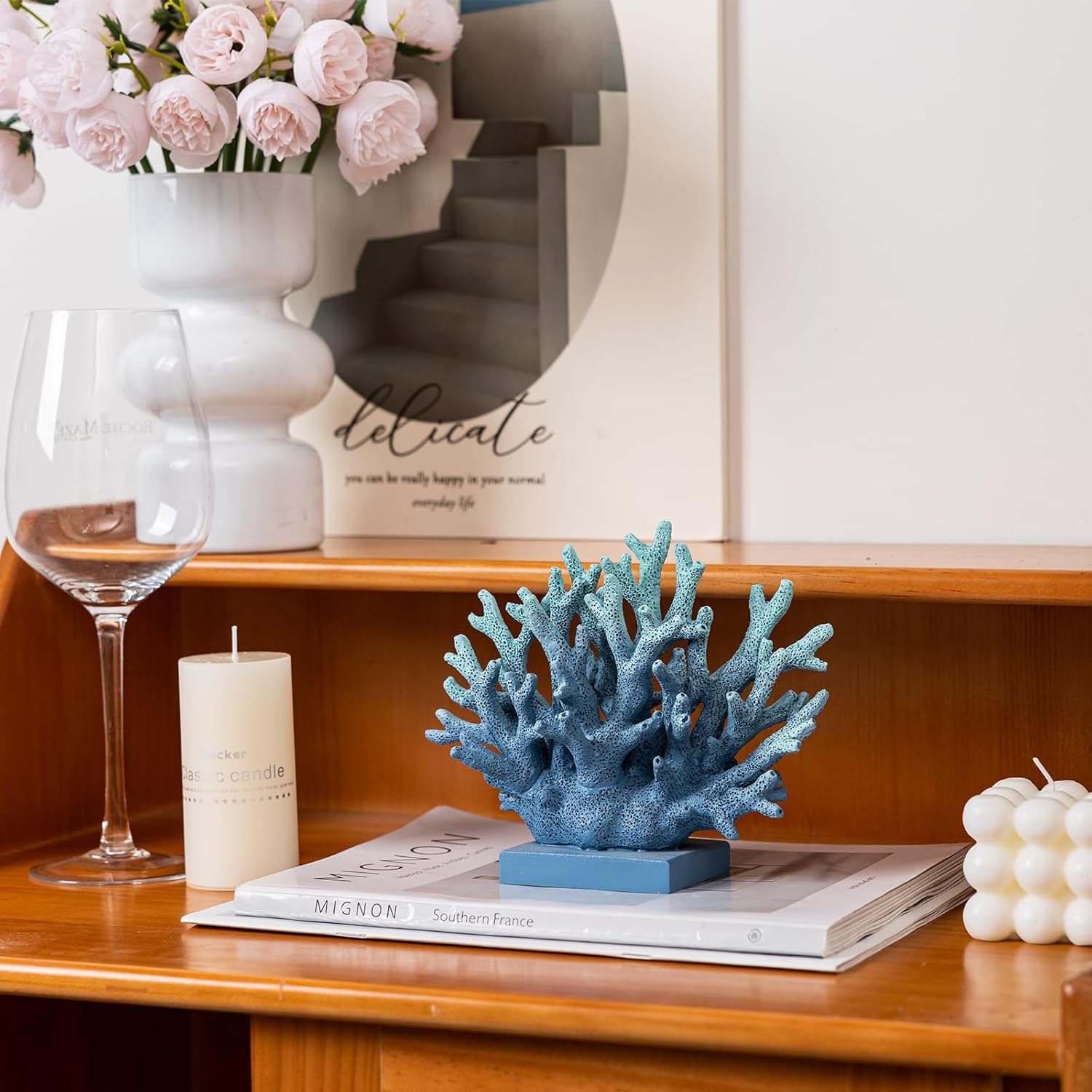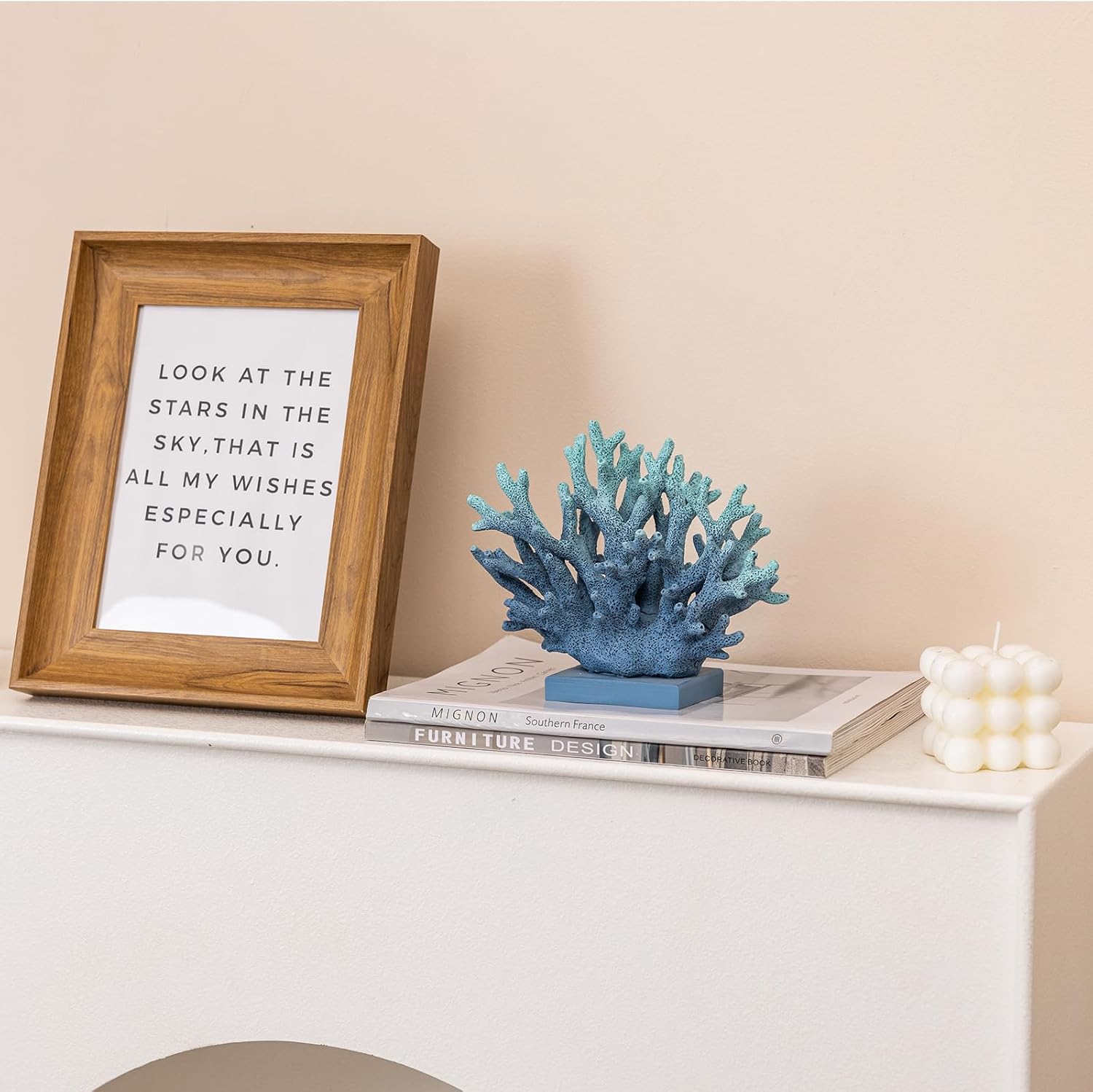 5.8" H Blue Coral Decor, Resin Coral Statue, Nautical Decorations for Home, Beach/Coastal/Ocean Themed Cabinet Shelf Tabletop Decor