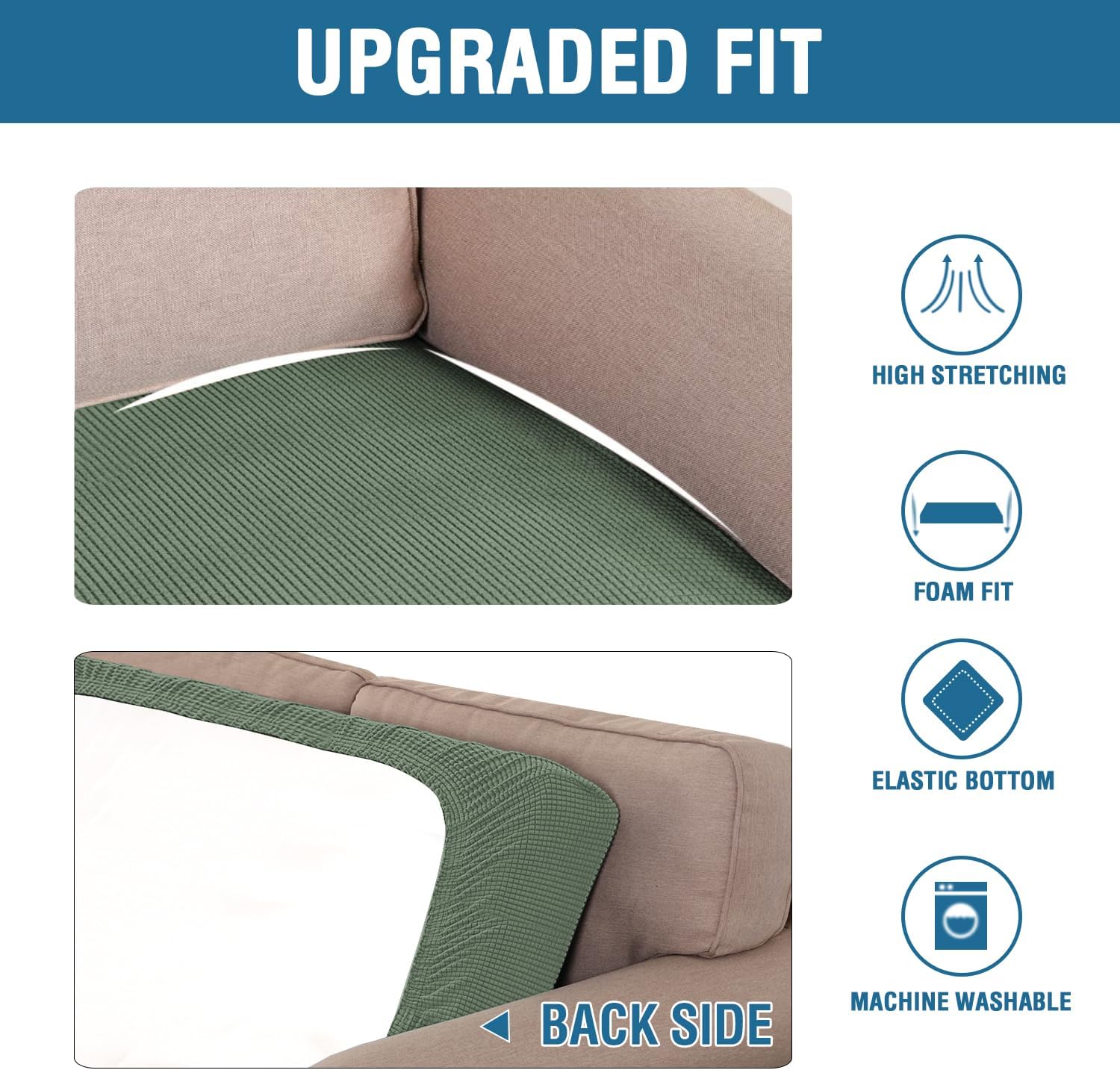 H.VERSAILTEX Super Stretch Individual Seat Cushion Covers Sofa Covers Couch Cushion Covers Slipcover Sets Thick Jacquard Textured Twill Fabric (1 Piece Chair Cushion Cover, Loden Frost)