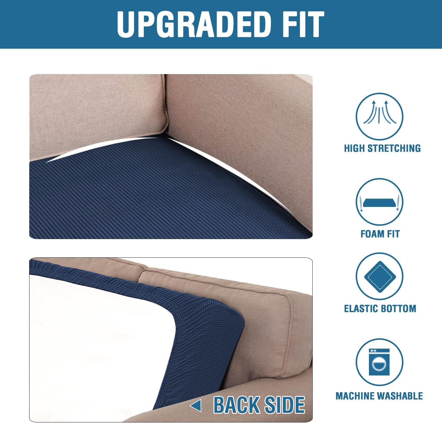 H.VERSAILTEX Super Stretch Individual Seat Cushion Covers Sofa Covers Couch Cushion Covers Slipcover Sets Thick Jacquard Textured Twill Fabric (1 Piece Sofa Cushion Cover, Navy)
