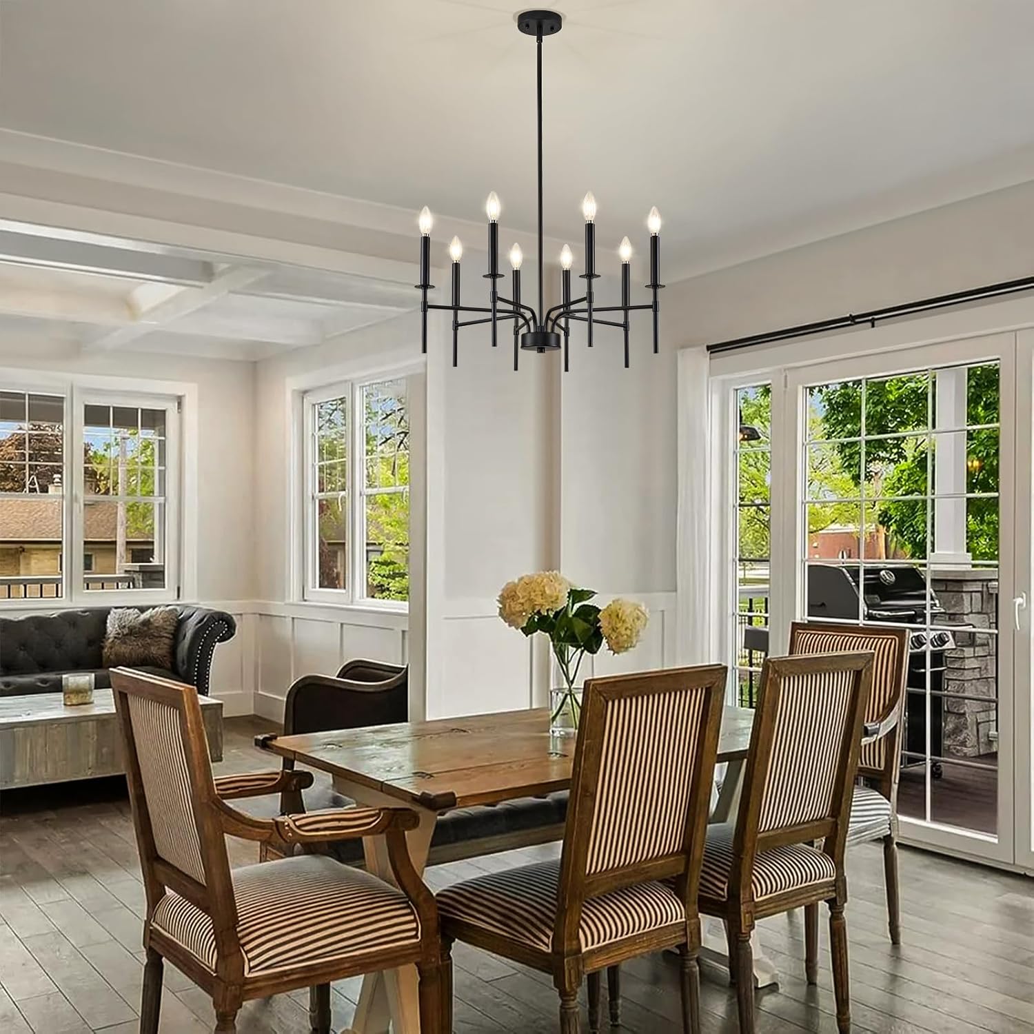 - Classic Farmhouse Chandelier: The ZUYURT 8-light black chandelier merges classic candle-style elegance with a sleek matte black finish. Crafted from premium iron, this sturdy and stylish black farmhouse chandelier is ideal for a dining room chandelier, or a centerpiece in your entryway modern chandelier for foyer