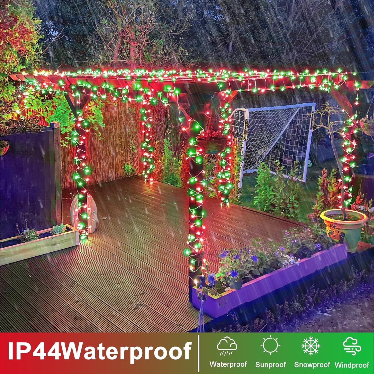 • Waterproof Fairy Lights Plug in: The red and green Christmas lights design with IP44 outdoor waterproof, can withstand wind, snow, rain and extreme weather. String lights are equipped with a UL certified 29V low-voltage plug ensures the safety. It's safe for family with kids or pets!