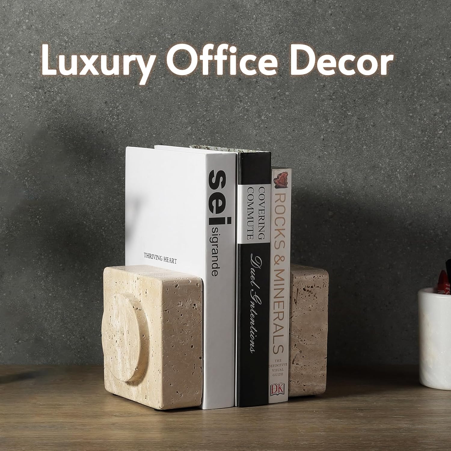 - A Charming Set: Our marble bookend is a stylish solution to prop up books on the office desk or bookshelf. With a square design, the marble comes in a soft beige finish for a sophisticated addition to your space
