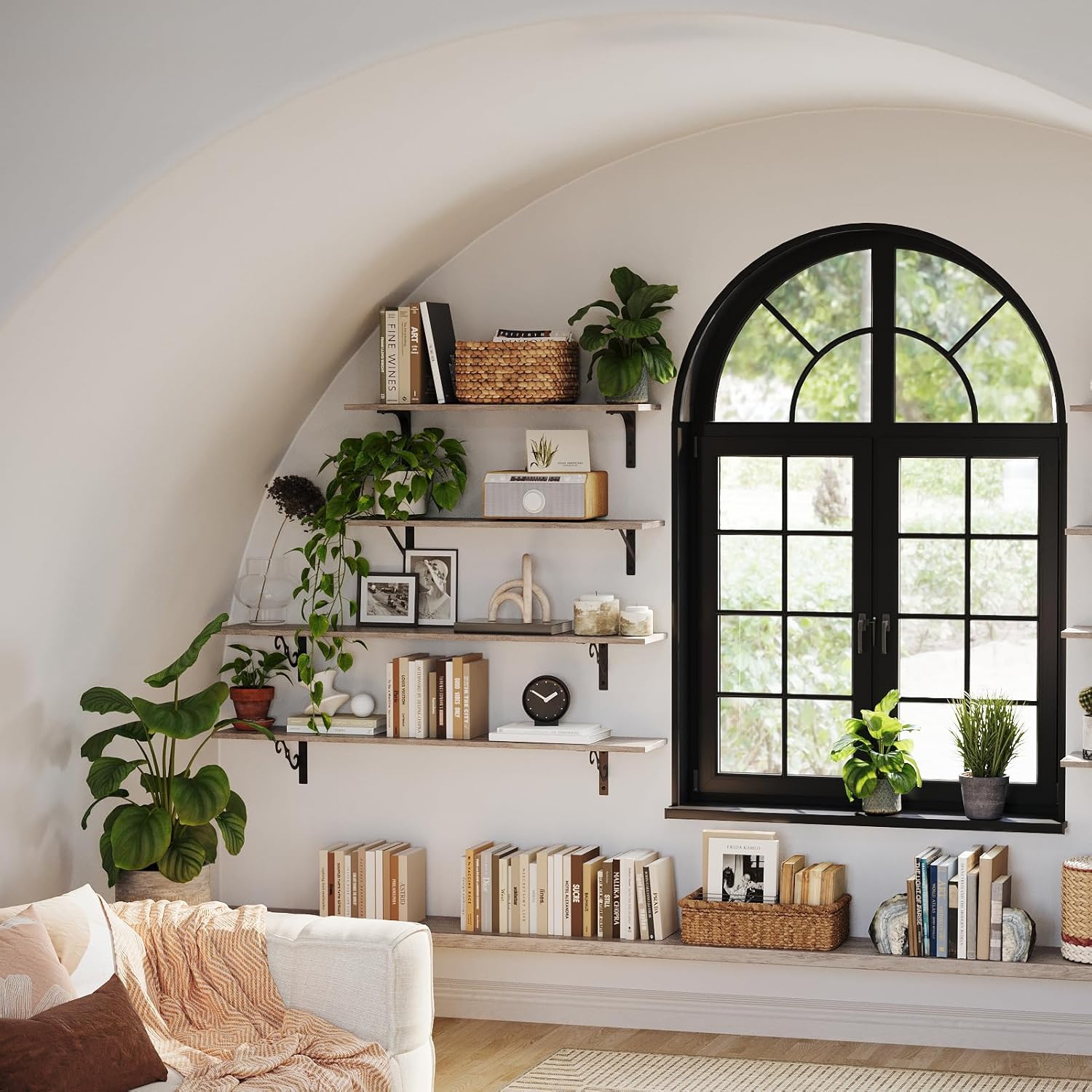 • 【Add Finishing Touch to Space】Mid-century design adds a retro-chic vibe to your home. Rusticity wood grain and exquisite S-shaped iron brackets flaunt visual interest and romance. They are full of character and enhance the texture of the space. A classy way to display your beloved decorations