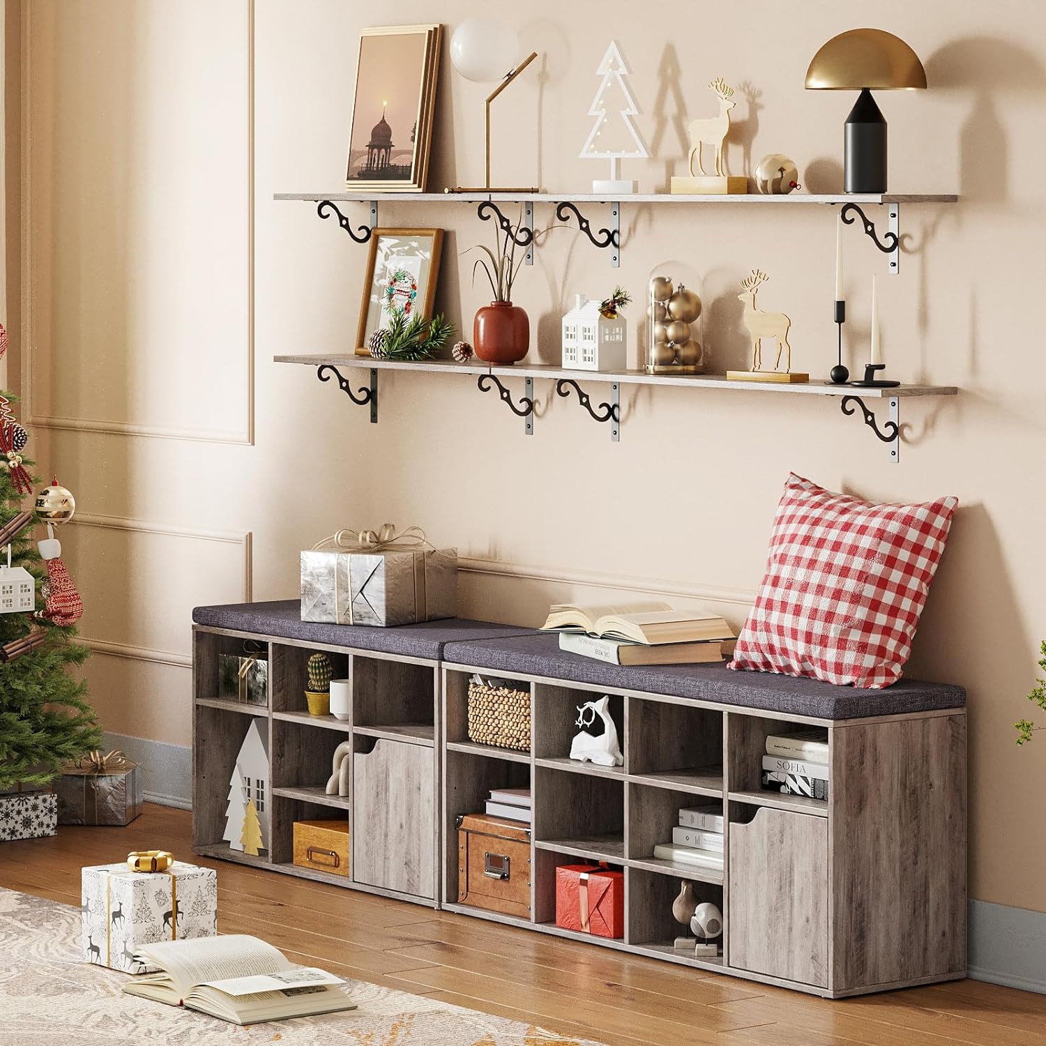 • 【Age with Grace in Any Setting】Turn your any wall into a real eye-catcher space with these large wall shelving. Long and wide enough for plates, glasses, books, legos, collection or towels etc. Make a statement in entryway, bathroom, balcony, study, kitchen, laundry, bar area, pantry