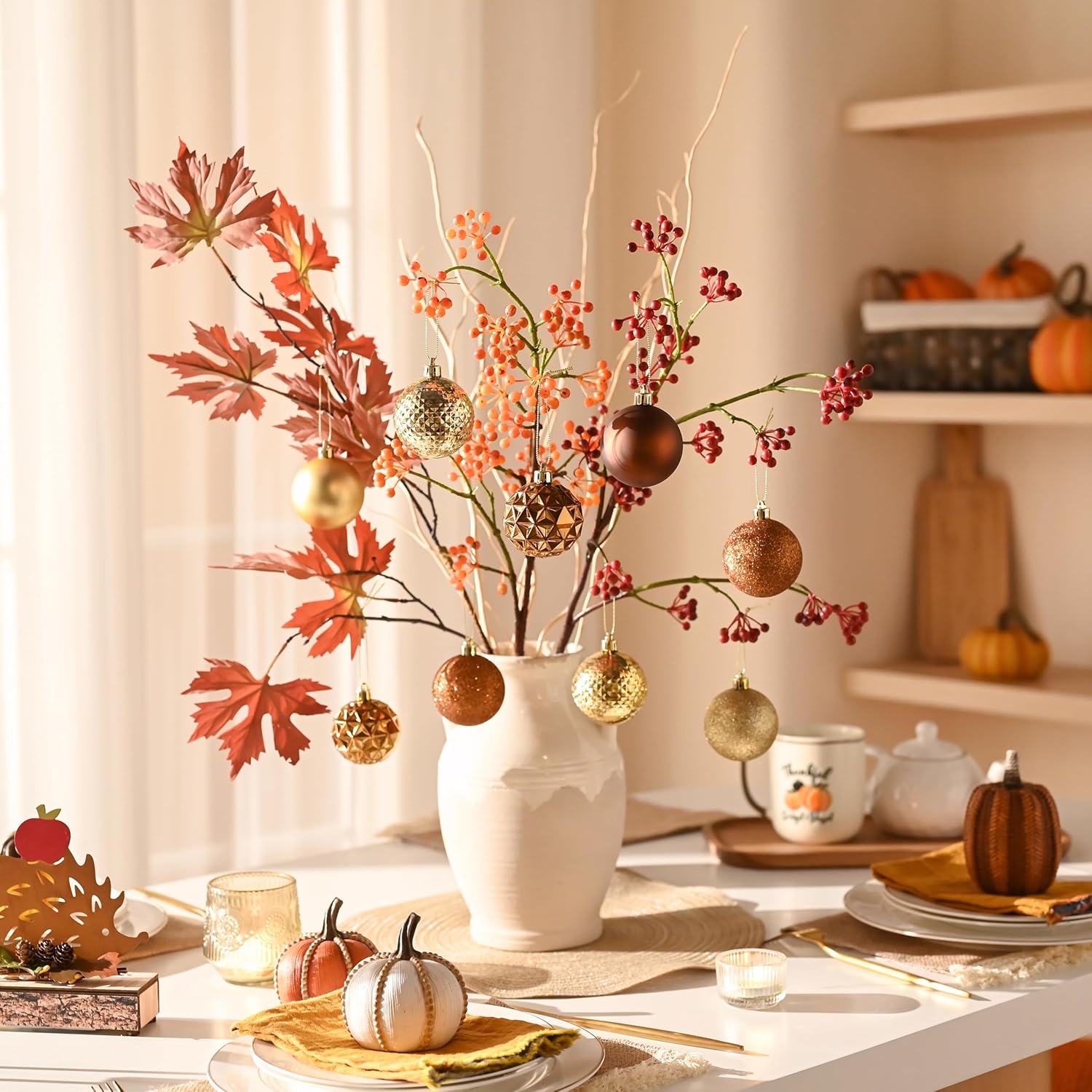 - 【Firm Cap & Ready to Hang】The sturdy plastic caps of autumn decor can support the weight of 335ml of water and come with a pre-tied string, making it easy to hang them on your tree or other desired locations