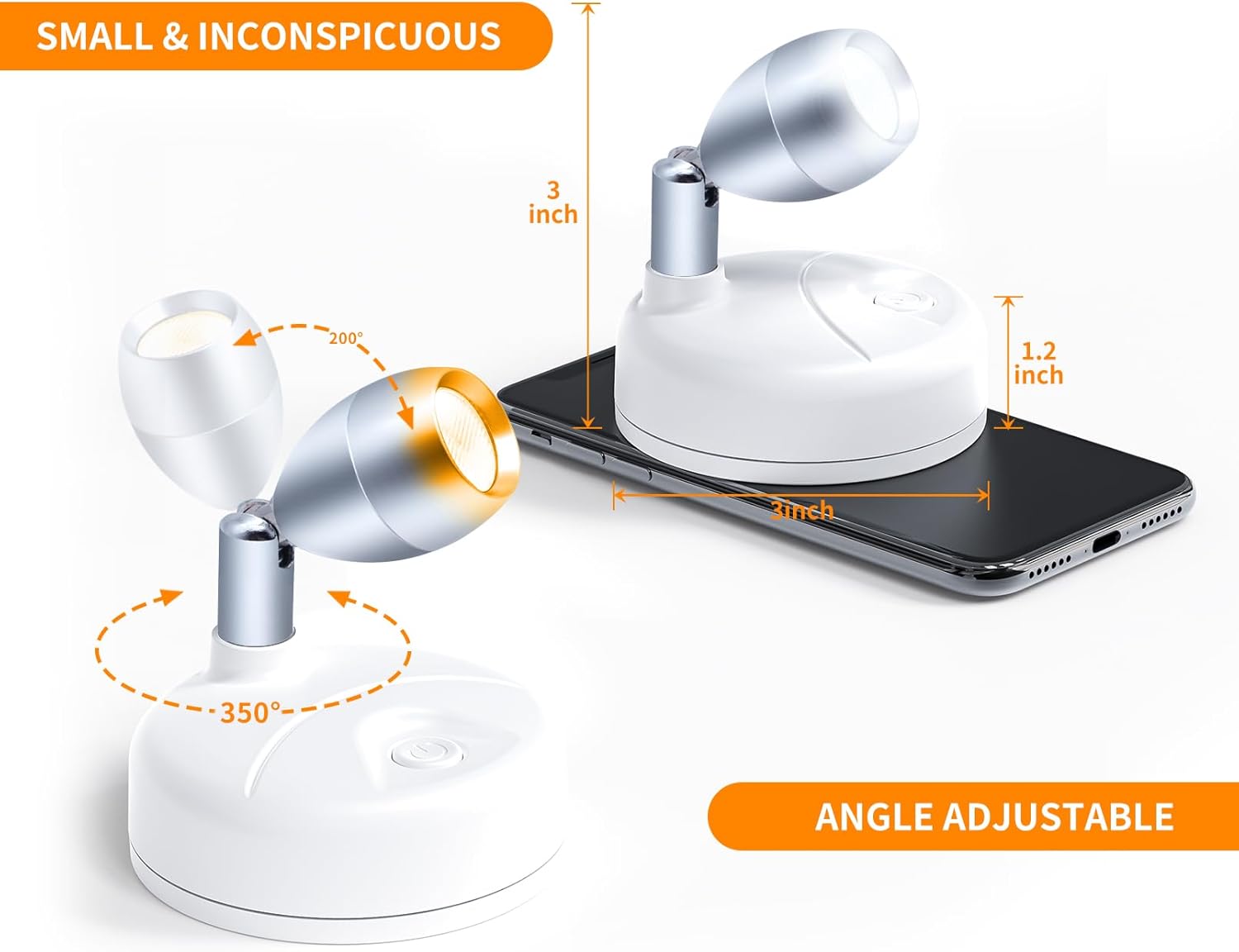 - Small Portable and Easy to Install-- the diameter of this tiny puck lights is only 3inch, powered by 3 pcs of batteries, no need to run wires, easy to install with provided 3M double-sided discs. It won’t take up much space and can easily hide from sight, perfect for adding extra light to small areas, or as accent light for highlighting small wall art, or as mood lighting in your bedroom at night.