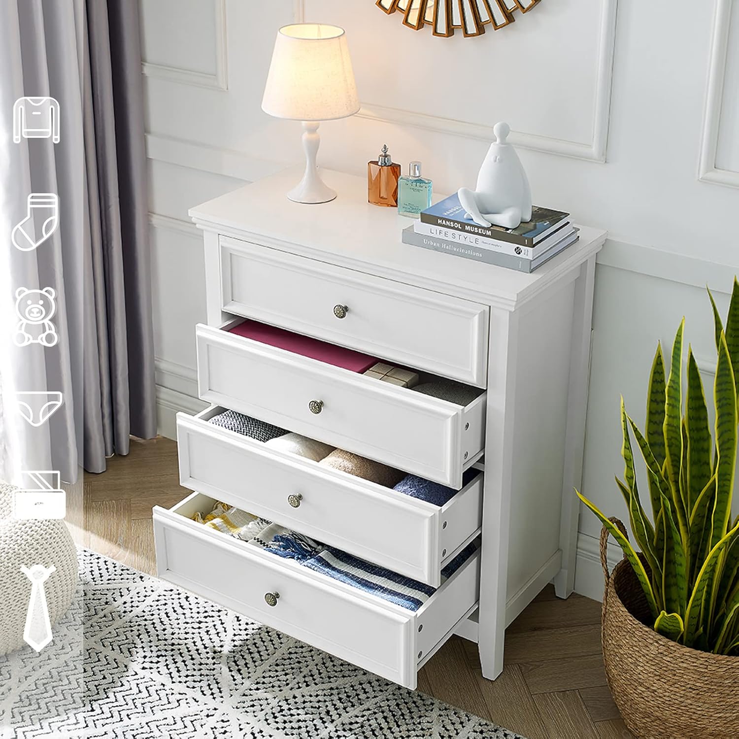 BLANKSPACE White Dresser for Bedroom, 4 Chest of Drawers Modern Wood Nightstand, Tall Clothes Organizer Cabinet for Guest Room, Living Room, Closets, Hallway, Bedroom