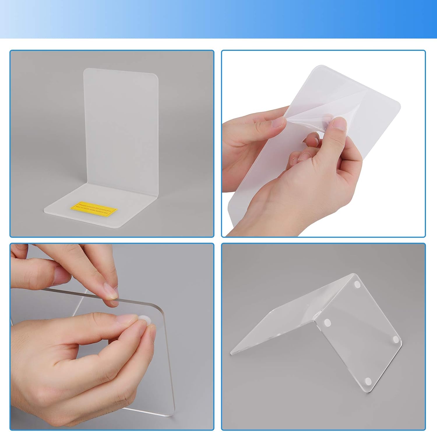 Lulonpon 6 Pieces Book Ends, Bookend, Books Ends for Shelves, Books Ends for Heavy Books, Clear Bookends, Acrylic Bookends for School, Library,Desktop Organizer and Book Shelves