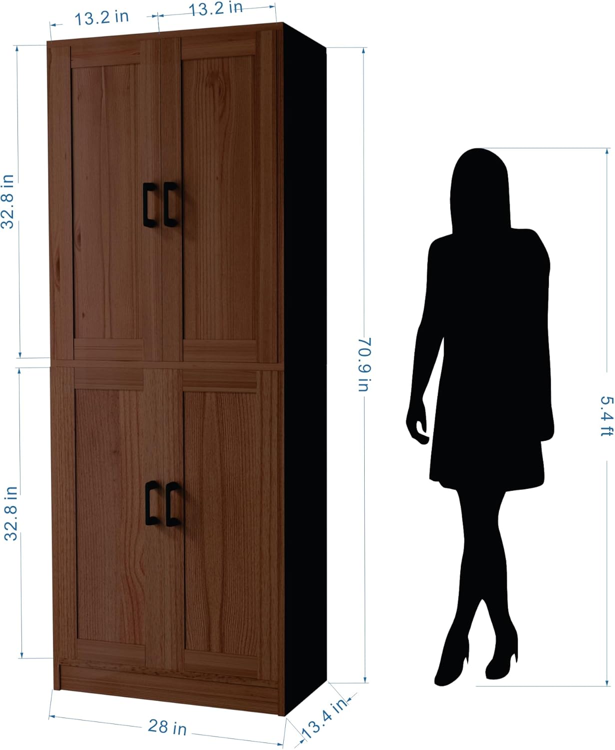 - ✔Multifunctional Storage Cabinet. Our DIYART kitchen pantry works as good as a storage unit and is suitable to use in many different ways at home, such as hallway cabinet or file cabinet in the office. Overall Dimensions: 28"W x 70.9"H x 13.4"D.