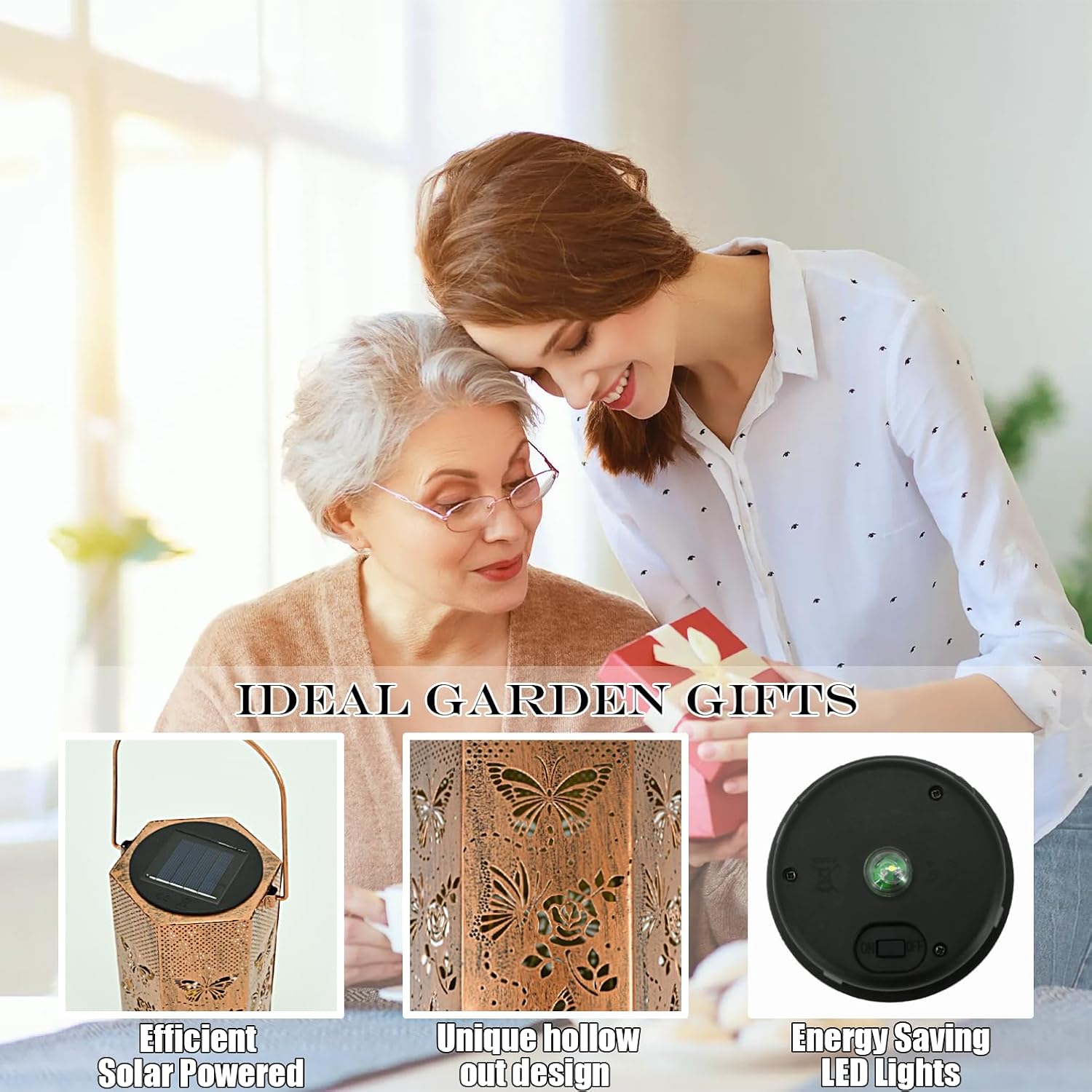 • Imaginative Garden Decor - Eandisom Outdoor Solar Lanterns are crafted from upgraded durable metal, The retro appearance, with gold copper color and hollow out metal veneer, gorgeous color, casts bright and warm light in darkness, accompanied by gorgeous and graceful patterns, adding a beautiful atmosphere to the surrounding environment. Add illuminated charm to a garden, patio, porch and outdoor tabletop with these solar lantern lights. Make your outdoor spaces unique and amazing.