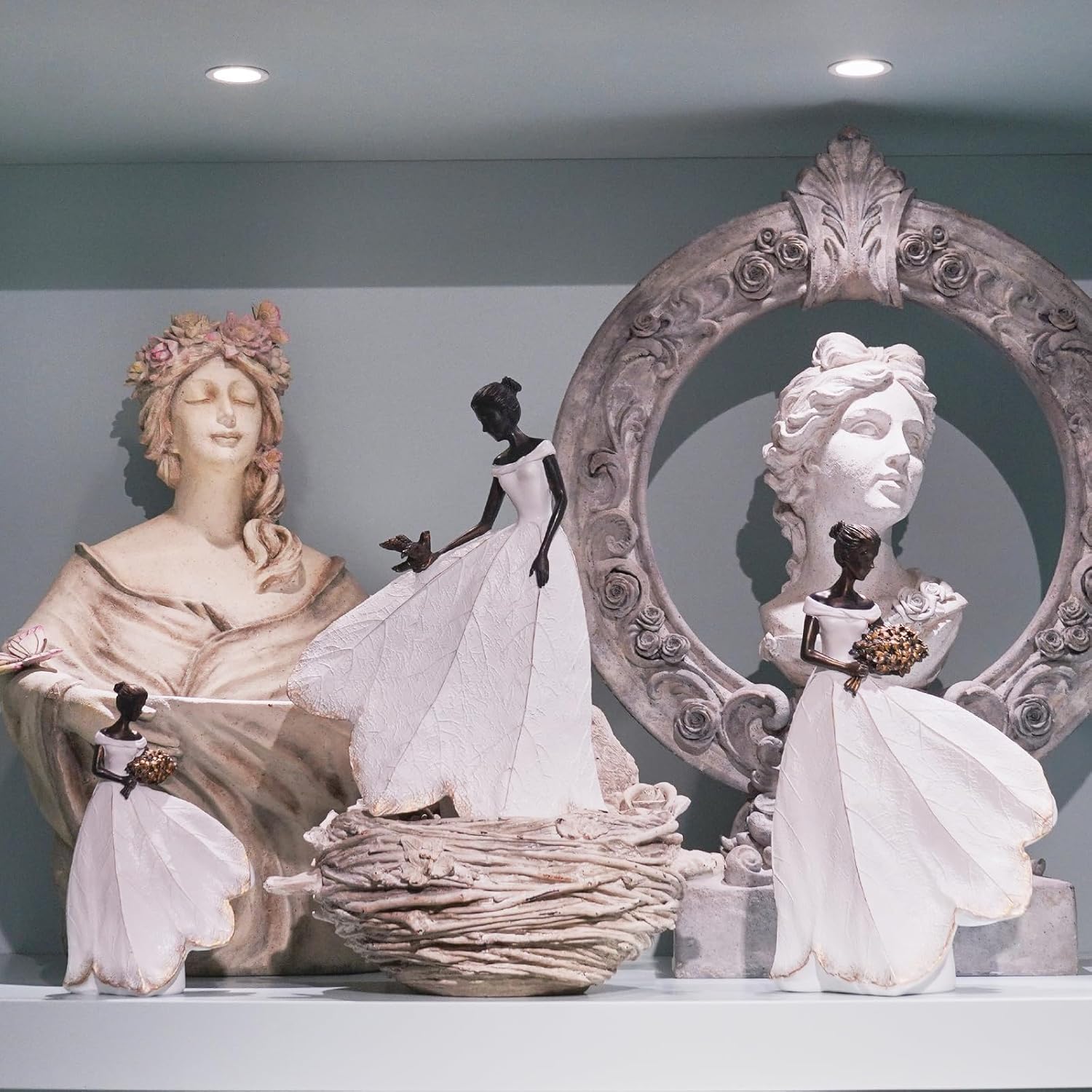 - Fairy Statue: Do you think your garden is too drab? Our leaf Angel girl statue product is originally designed by the designer. The skirt is in the shape of a leaf with the delicate texture of a leaf, which looks very artistic. It can add a different aesthetic feeling to your room or garden.