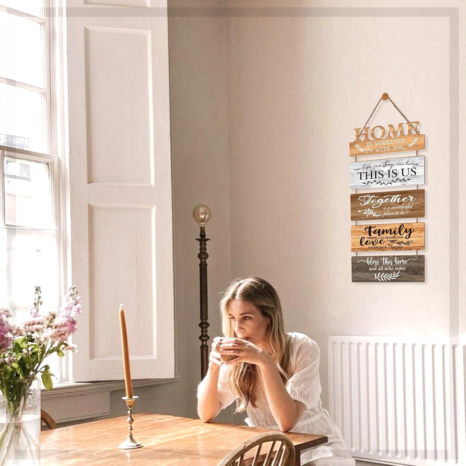 - 【FPRIMITIVE FARMHOUSE ACCENTS】: Distressed and aged grain wood, farmhouse rustic looking for your living room, bedroom. Printed with positive & lovely words.These are really nice & lightweight allowing you to hang them just about anywhere.