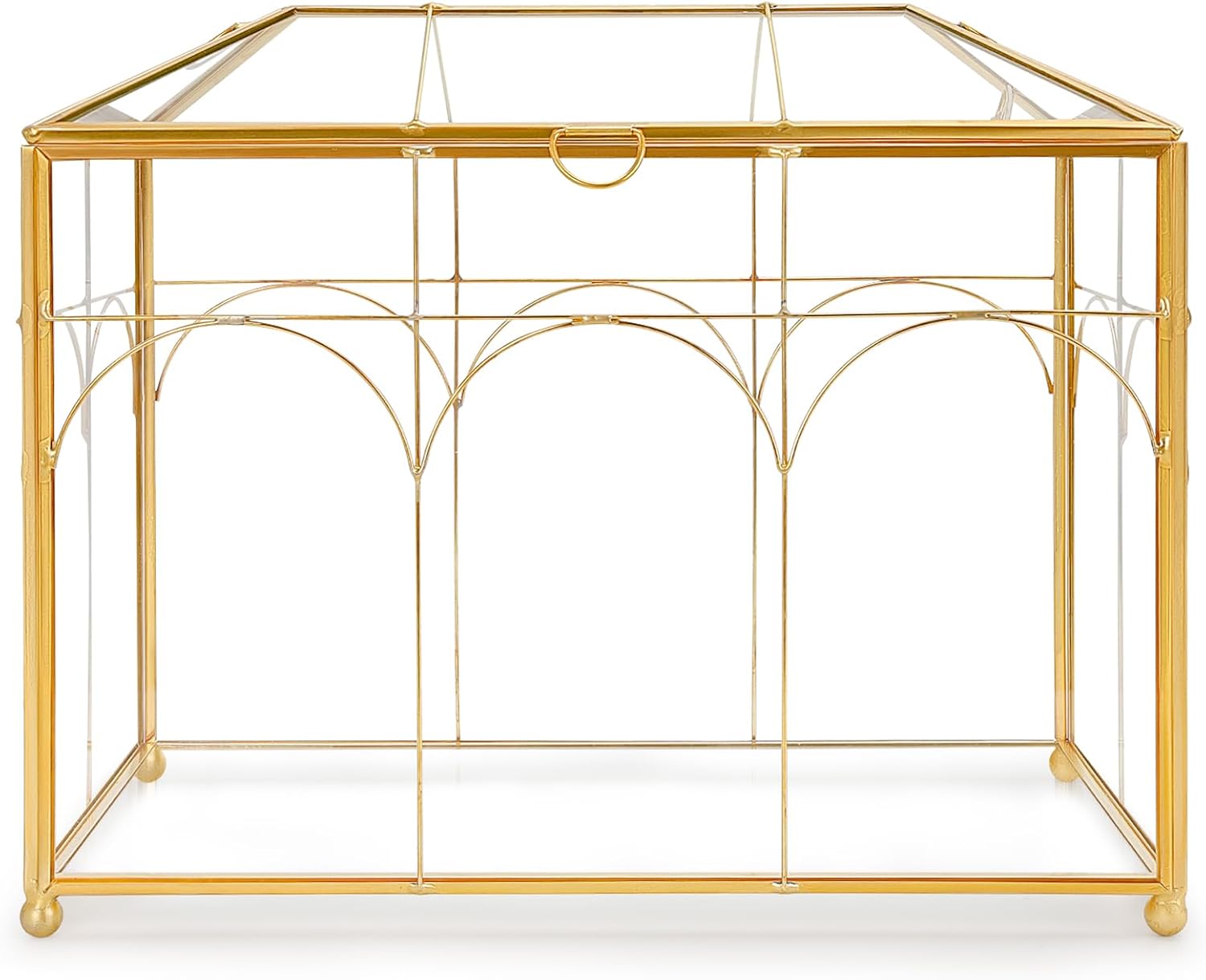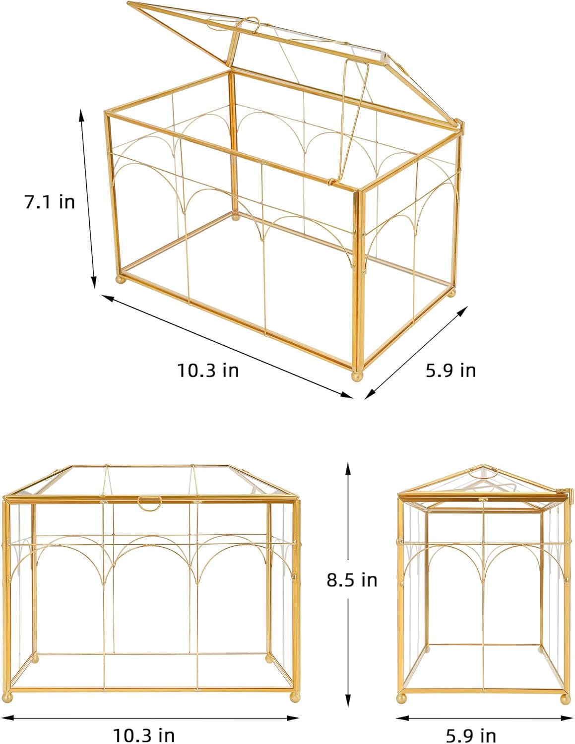 Handmade Glass Planter Terrarium with Lid, Indoor Tabletop Centerpiece Display Box Modern Decor DIY Gift Plant Terrarium Container for Succulent Cacti Air Plants Flower (Gold)