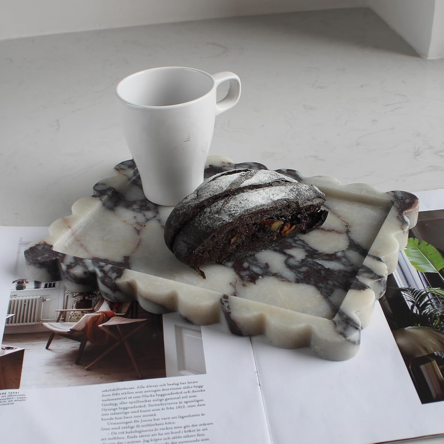 - ➤100% Natural Marble: Made from solid marble, with a special marble pattern, each tray is unique in the world, this decorative tray ensures durability and long-lasting enjoyment
