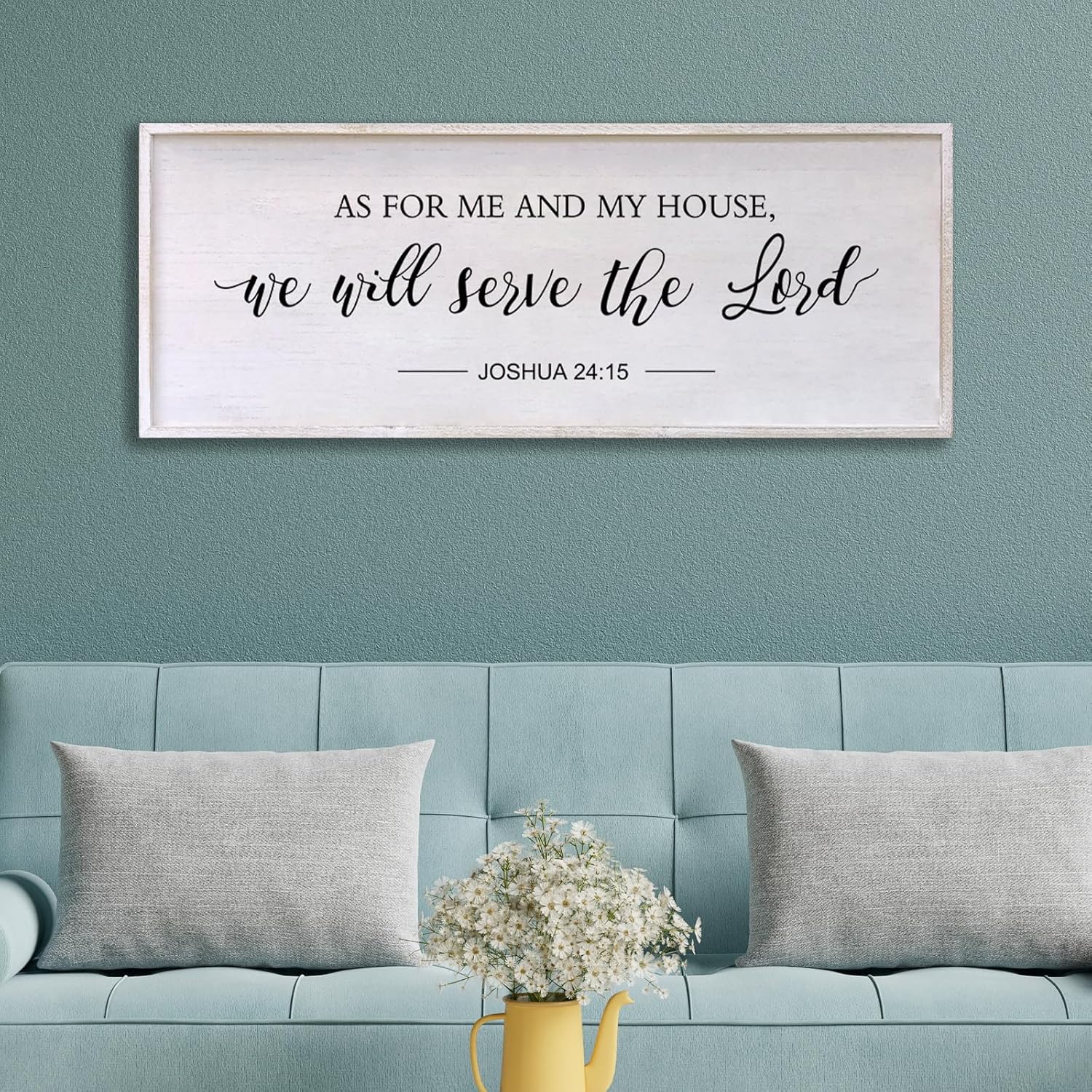 As for Me and My House We Will Serve the Lord Wall Decor - 32" x 12" Large Rustic Family Living Room Wood Framed Home Sign Joshua 24 15 Christian Bible Verse Plaque Hanging Wall Art(White)