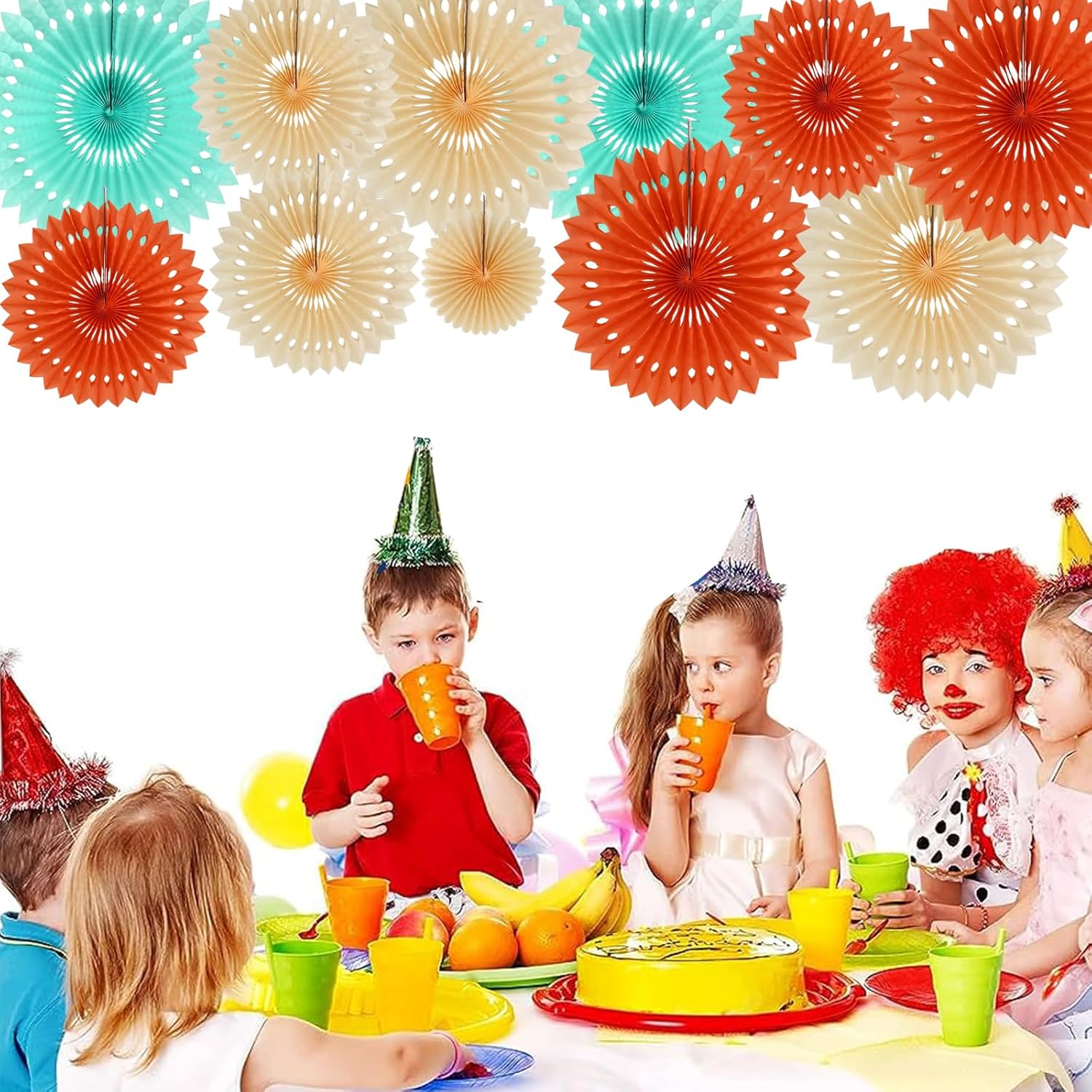 - 【Hanging decoration kit】: includes 11 paper flower fans of 4 sizes, among which the paper flower fan size is 16 inches * 2, 12 inches * 4, 8 inches * 4,6 inches*1, color include orange,blue,white.